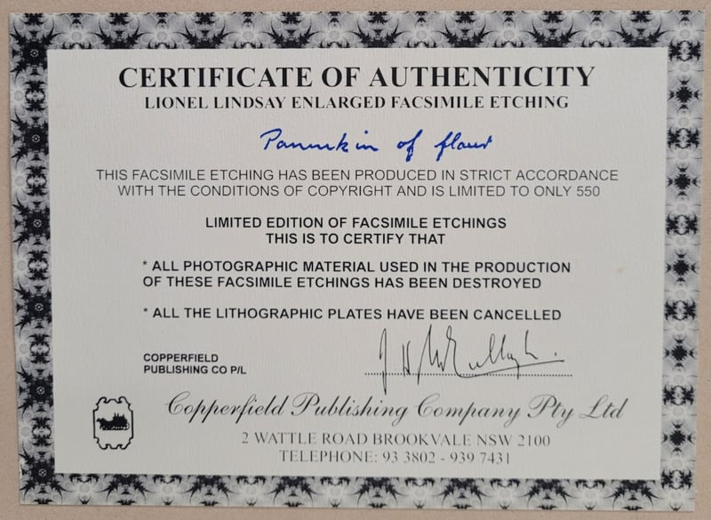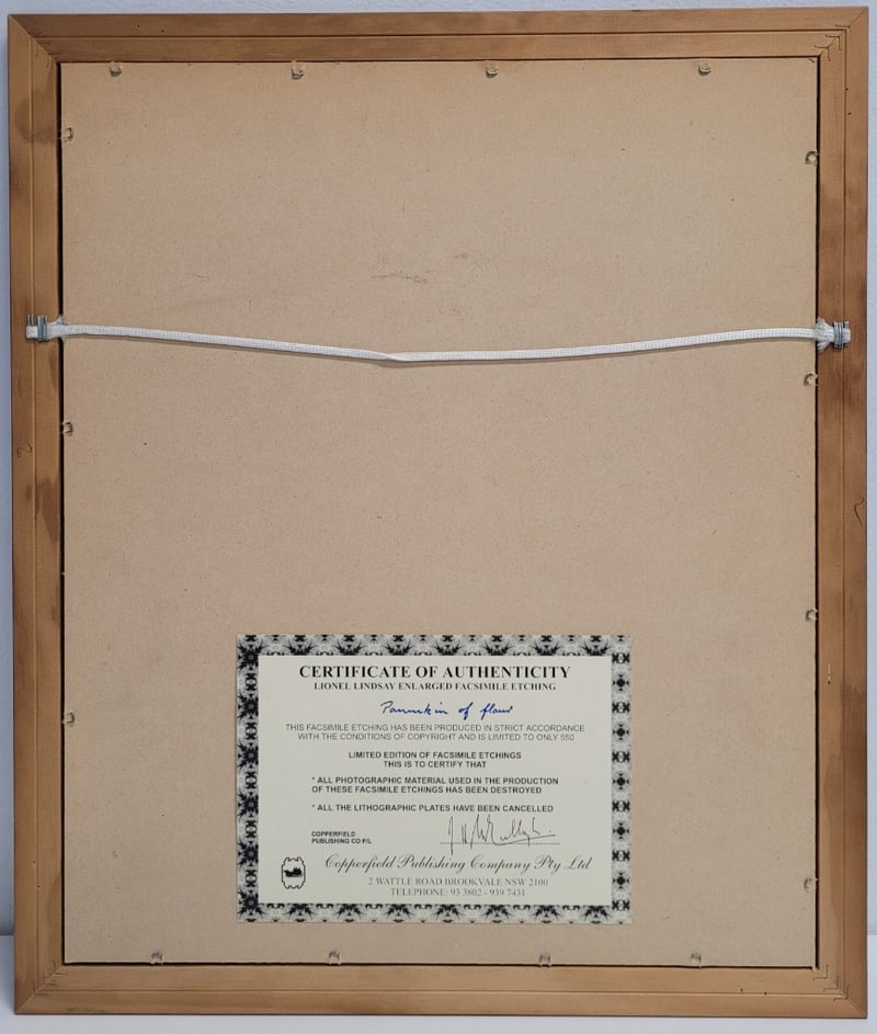 LIONEL LINDSAY (1874-1961)Print On PaperTitle: A Pannikin, Of FlawsFrame Size: 50cm x 42cmSignature Details: Signed Lower RightCondition: Good - Refer To Images488327+21