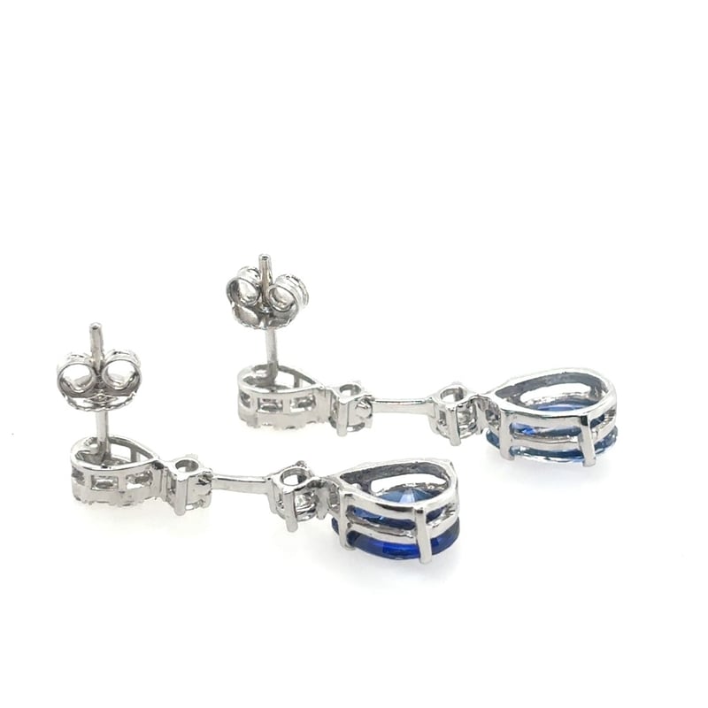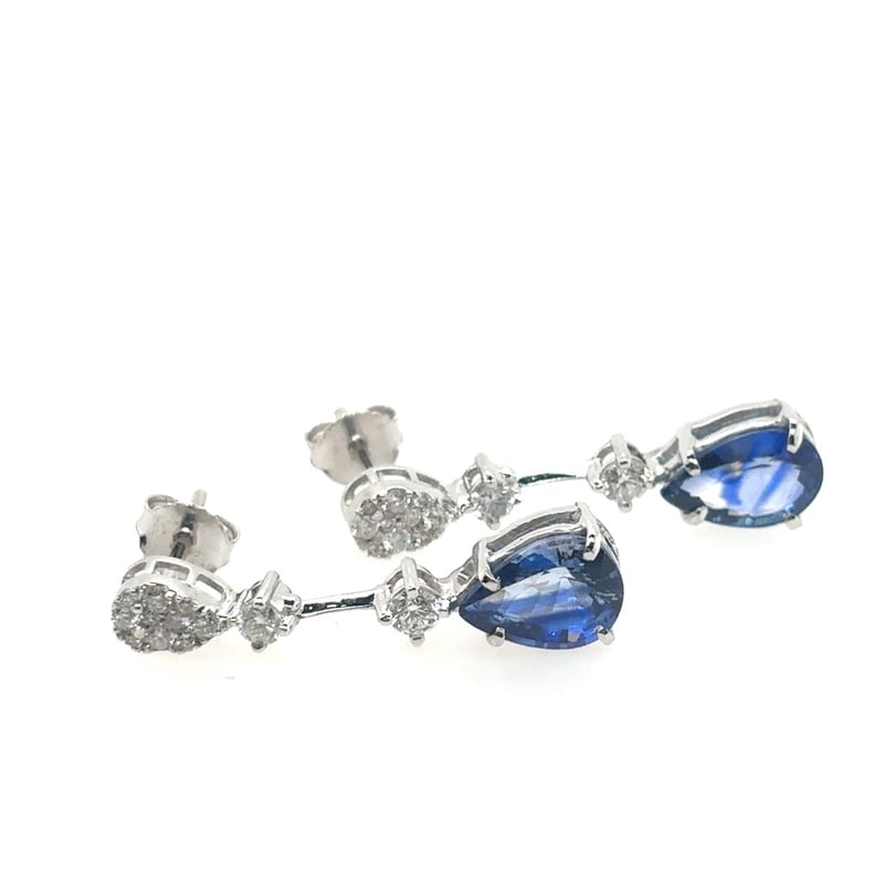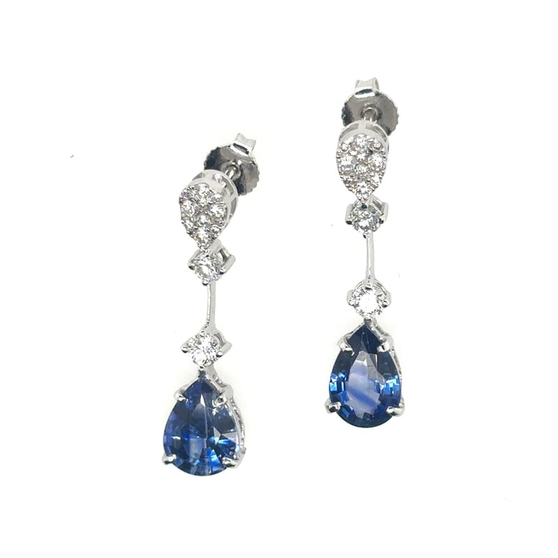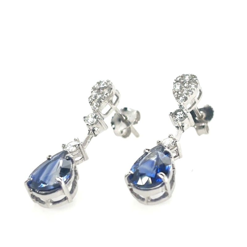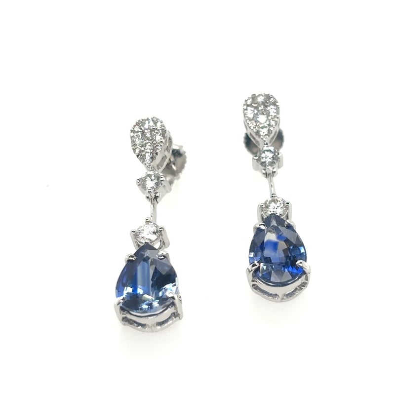 Featuring 2 Pear Cut Deep Blue Ceylon Type Sapphires 3.58Tcw (9.5 X 6.5 X 3.4Mm). 24 Brilliant Cut Diamonds 0.65Tcw.