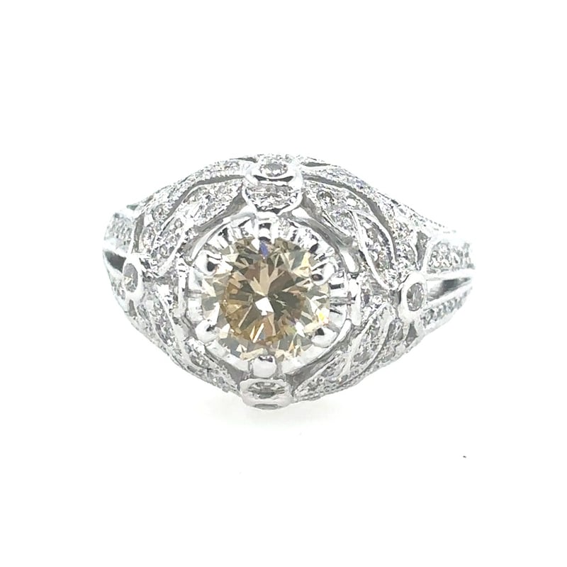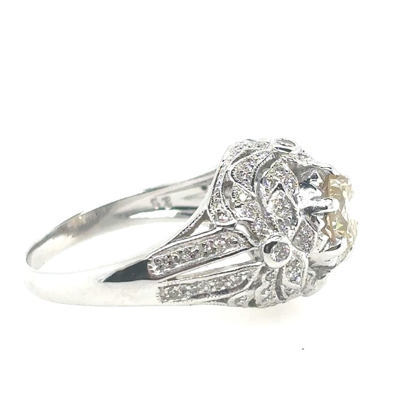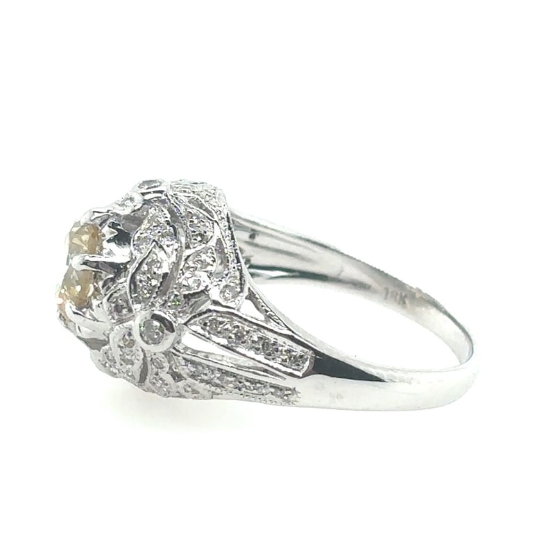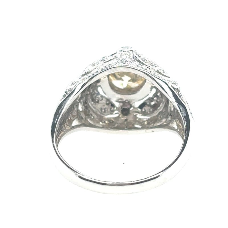 18CT WHITE GOLD DIAMOND RING, ART DECO STYLE.Featuring A Round Brilliant Cut Diamond, Claw Set, 1.08Tcw (6.5Mm). 72 Brilliant Cut Diamonds 0.60Tcw. Finger Size N.Clarity: Si. Colour: Fancy Light Yellow.Total Item Weight: 6.54gCondition: Good - Refer To ImagesThis valuation has been conducted by an independent third-party professional. The valuation amount is an assessment by the issuing valuer and does not reflect the auction value of the item.Any inquiries regarding the valuation should be directed to the issuing valuer (refer to contact details on the certificate), as Lloyds Auctions has no affiliation or influence over the valuation, the valuer, or the stated amount.Insurance Replacement Valuation Amount: $27,500.00CROSSDOCK162898+8
