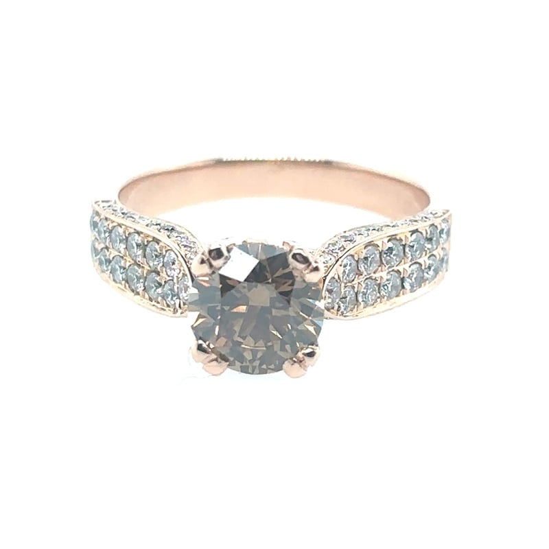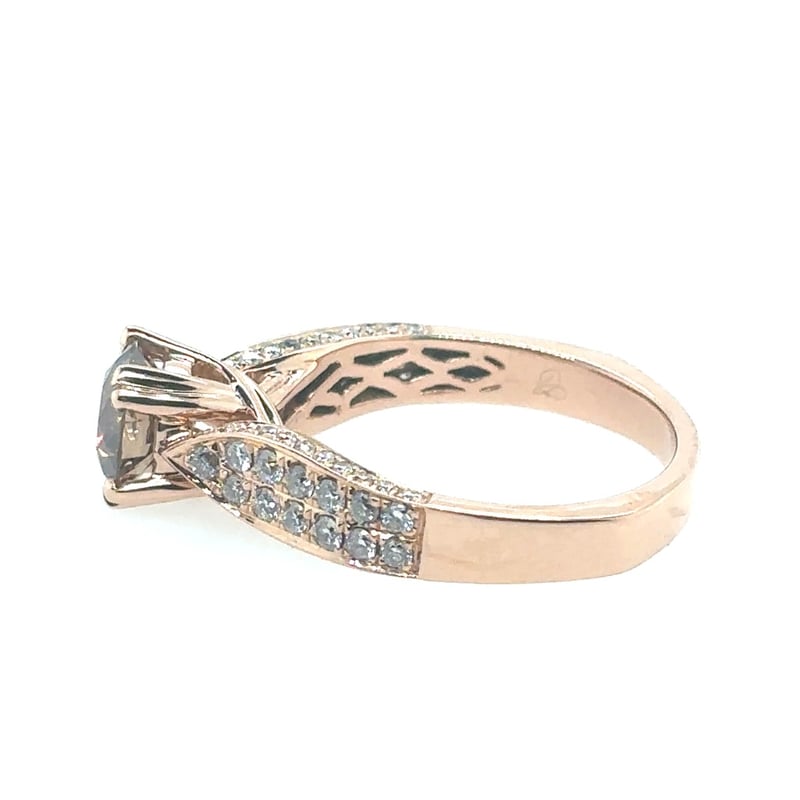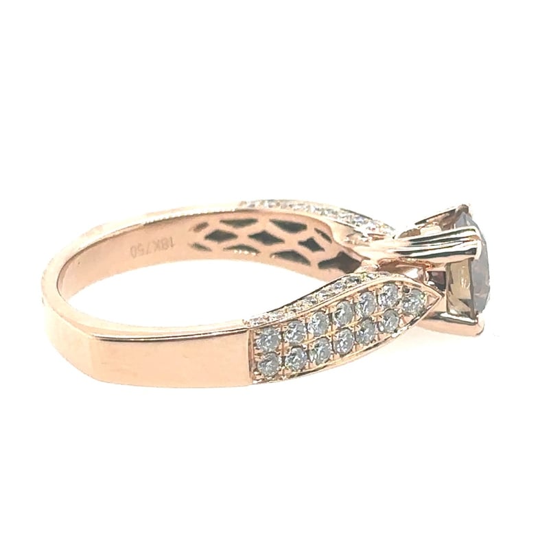 18CT ROSE GOLD DIAMOND RING.Featuring A Round Brilliant Cut Diamond, Claw Set, 1.28Tcw (6.95Mm). 66 Round Brilliant Cut Diamonds Set On Centre Or Ring 0.80Tcw. Finger Size N. Accompanied By Insurance Valuation Assessment.Clarity: Vs. Colour: Vivid Deep Cognac.Total Item Weight: 5.66gCondition: Good - Refer To ImagesThis valuation has been conducted by an independent third-party professional. The valuation amount is an assessment by the issuing valuer and does not reflect the auction value of the item.Any inquiries regarding the valuation should be directed to the issuing valuer (refer to contact details on the certificate), as Lloyds Auctions has no affiliation or influence over the valuation, the valuer, or the stated amount.Insurance Replacement Valuation Amount: $24,000.00CROSSDOCK162898+11