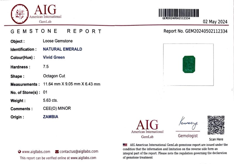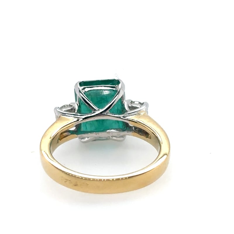 Featuring An Emerald Cut Zambian Emerald, Claw Set, 5.63Tcw (11.64Mm X 9.06Mm X 6.43Mm). 2 Round Brilliant Cut Diamonds, Claw Set Either Side Of Centre Stone 0.68Tcw (4Mm). Finger Size P. Accompanied By Insurance Valuation Assessment And Aig Report Gem20240502112334.