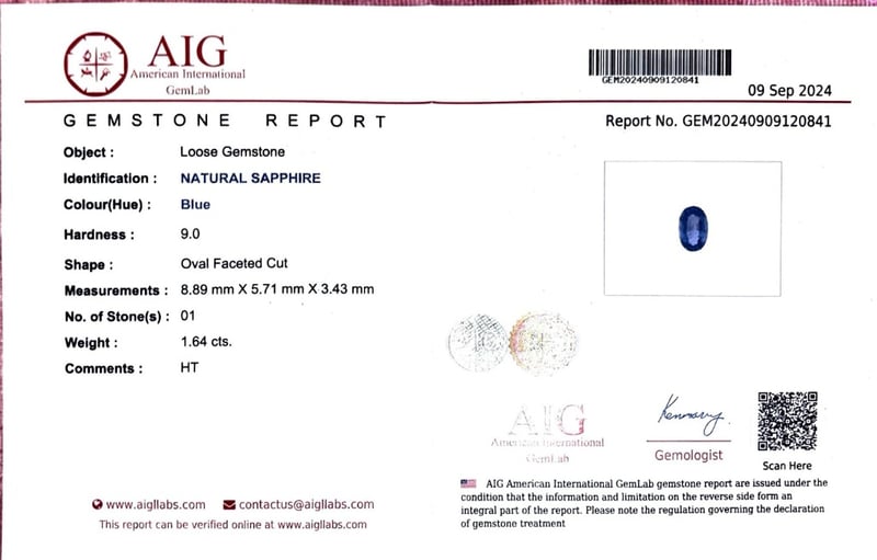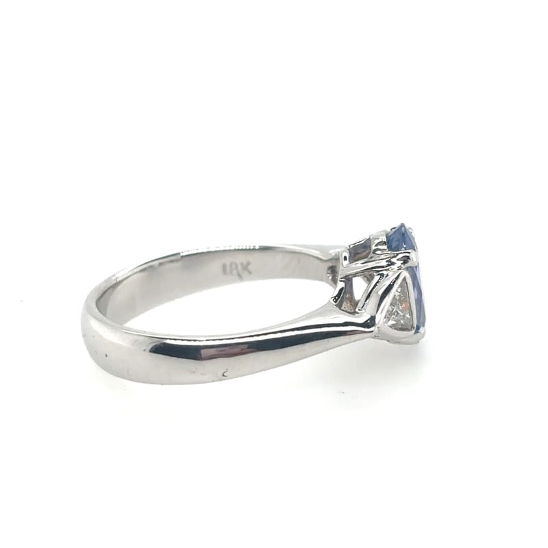 18CT WHITE GOLD SAPPHIRE AND DIAMOND RING.Finger Size N. Featuring Oval Cut Blue Natural Sapphire 1.64Tcw (8.89 X 5.71 X 3.43Mm). Comes With Aig Report #Gem20240909120841. 2 Trilliant Cut Diamonds 0.56Tcw.Clarity: Vs. Colour: G.Total Item Weight: 5.26gCondition: Good - Refer To ImagesThis valuation has been conducted by an independent third-party professional. The valuation amount is an assessment by the issuing valuer and does not reflect the auction value of the item.Any inquiries regarding the valuation should be directed to the issuing valuer (refer to contact details on the certificate), as Lloyds Auctions has no affiliation or influence over the valuation, the valuer, or the stated amount.Insurance Replacement Valuation Amount: $22,000.00CROSSDOCK162898+21