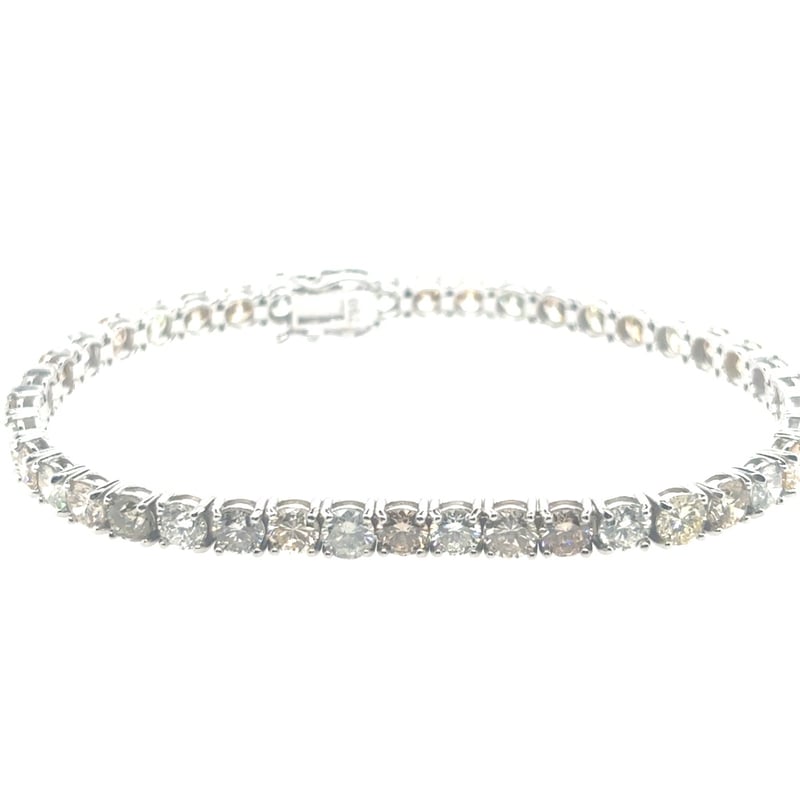 18 CT WHITE GOLD DIAMOND TENNIS BRACELET.Bracelet Has A Tounge And Groove Clasp With 2 Figure Latches, 12.37G. Accompanied By Insurance Valuation Assessment.Featuring 42 Round Brilliant Cut Diamonds, Claw Set, 11.60Tcw (4.0Mm). Clarity: Si. Colour: White, Yellow And CognacLength: 18.00cmCondition: Good - Refer To ImagesThis valuation has been conducted by an independent third-party professional. The valuation amount is an assessment by the issuing valuer and does not reflect the auction value of the item.Any inquiries regarding the valuation should be directed to the issuing valuer (refer to contact details on the certificate), as Lloyds Auctions has no affiliation or influence over the valuation, the valuer, or the stated amount.Insurance Replacement Valuation Amount: $55,000.00CROSSDOCKED162898+1