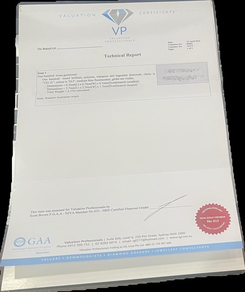 2.37 CARAT WESTERN AUSTRALIAN ORIGIN MIXED CUT CLARITY VSI-J1 WITH TECHNICAL REPORT COLOR H-J
