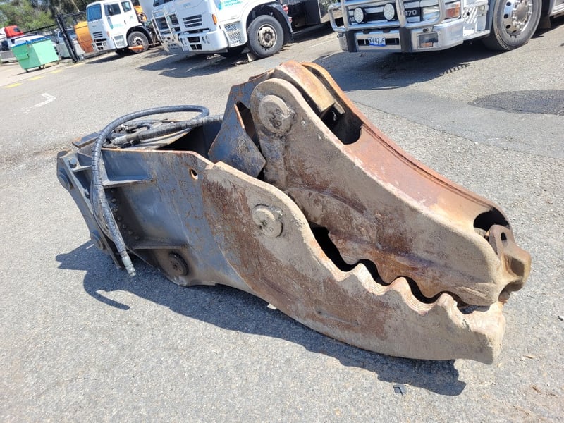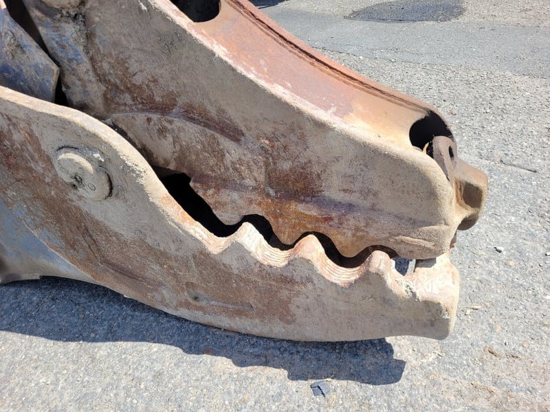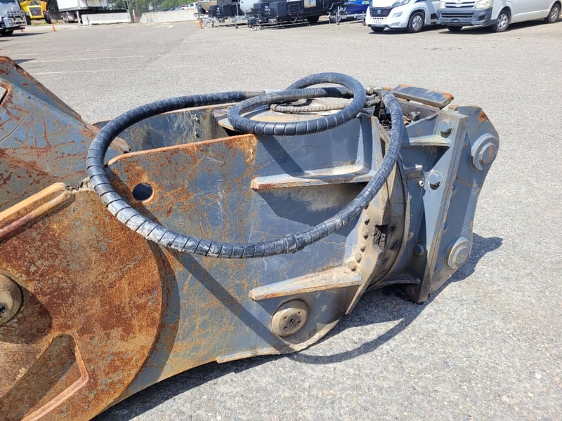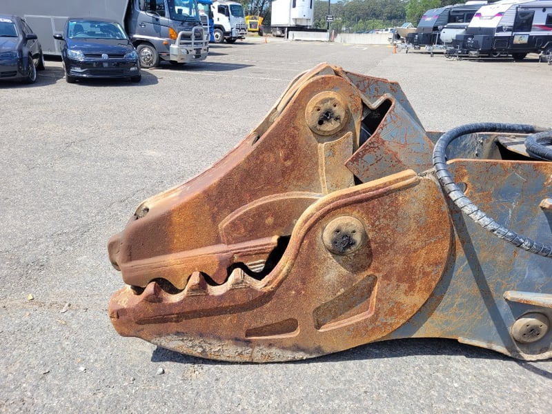Description: 530mm pin centres, 475mm, 475mm between ears, used grab attachment, vendor advises for 30T machine and in working condition, note rust evident, some damage inspection recommended.