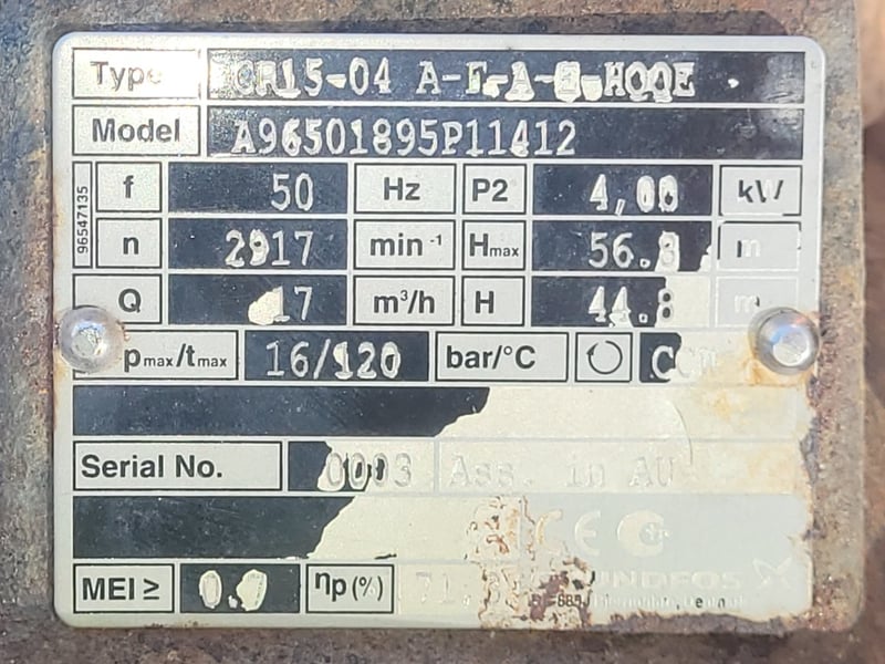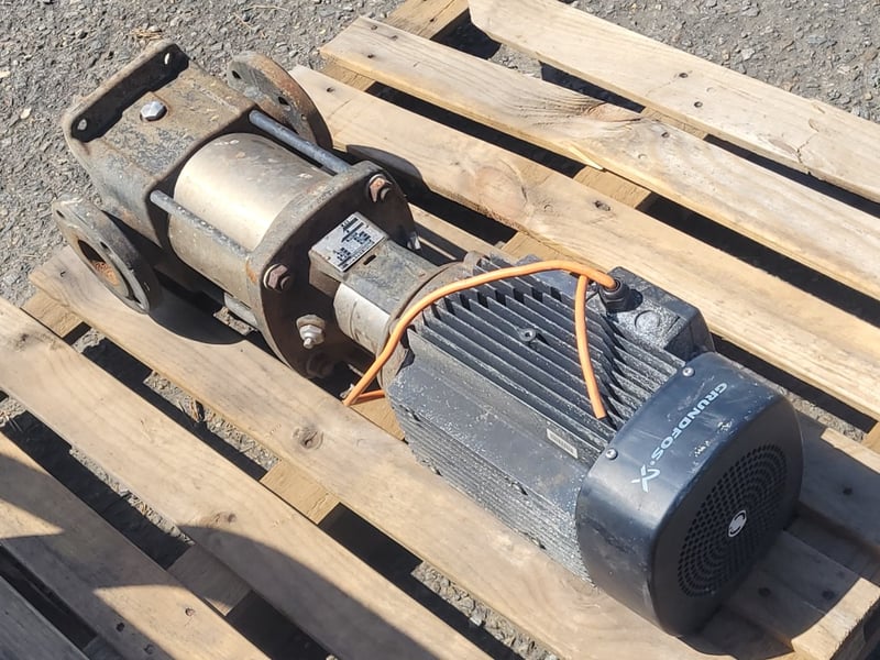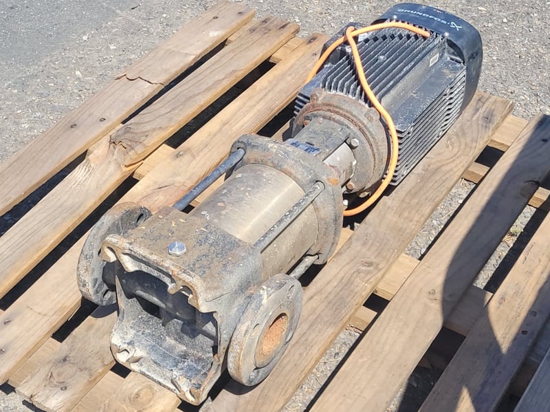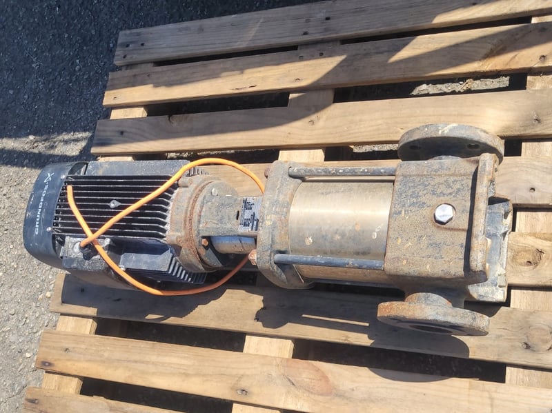 Grundfos Vertical Pump Description: Serial No. 003, model A96501895P11412 damaged no power connection, marks and scratches, rust evident, unknown working condition,