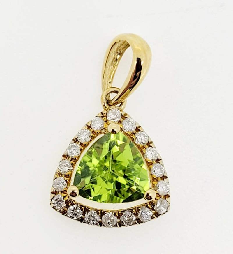 10 CT YELLOW GOLD NATURAL DIAMOND & PERIDOT PENDANT1 Peridot = 0.90 Carat18 Round Brilliant Diamonds = 0.16 CaratPendant Weight: 0.80 GramsCondition: Good - Refer To Images488971+13