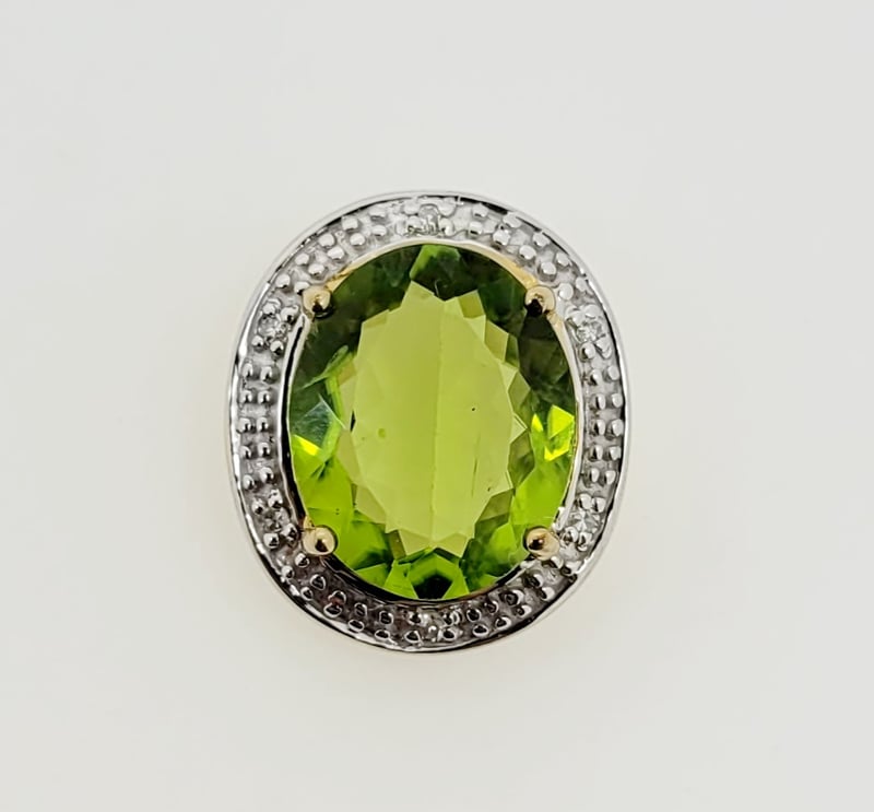 9 CT YELLOW GOLD NATURAL DIAMOND & PERIDOT PENDANT