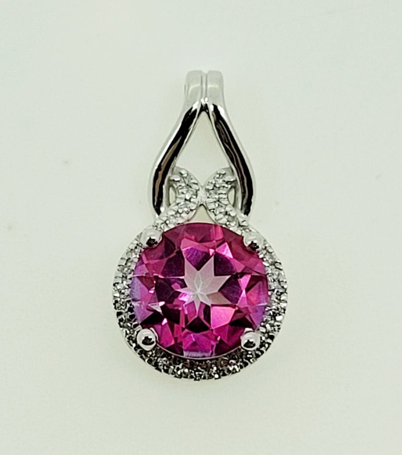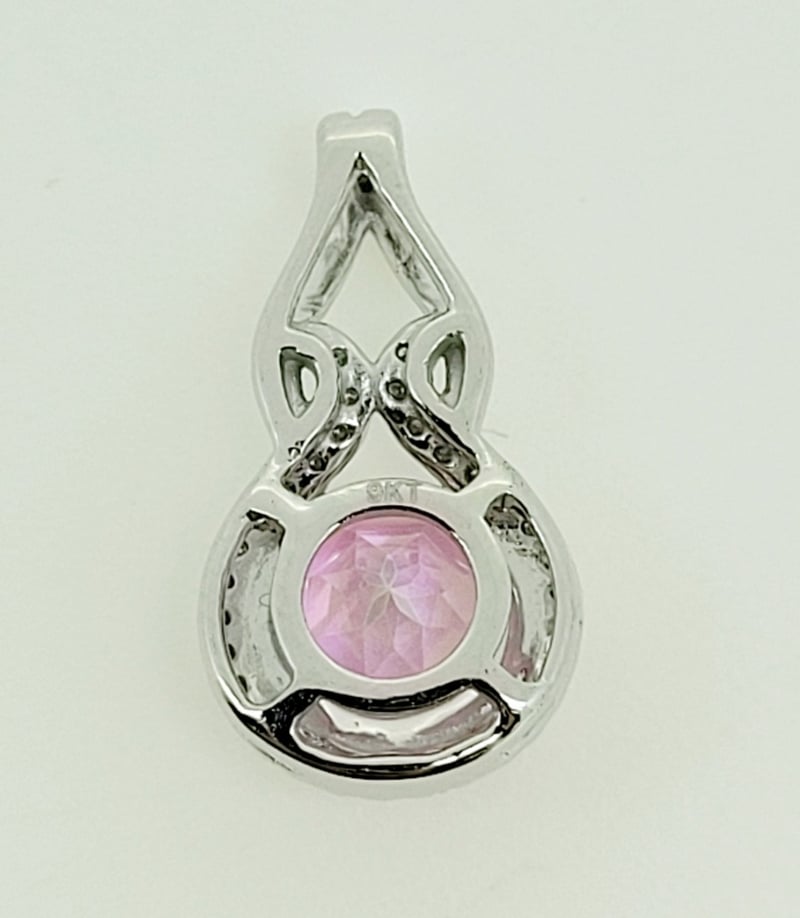 9 CT WHITE GOLD NATURAL DIAMOND & PINK TOPAZ PENDANT