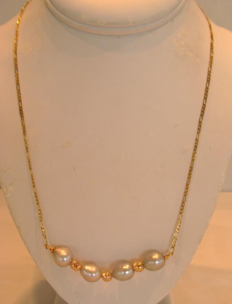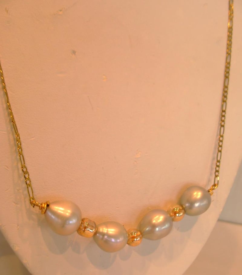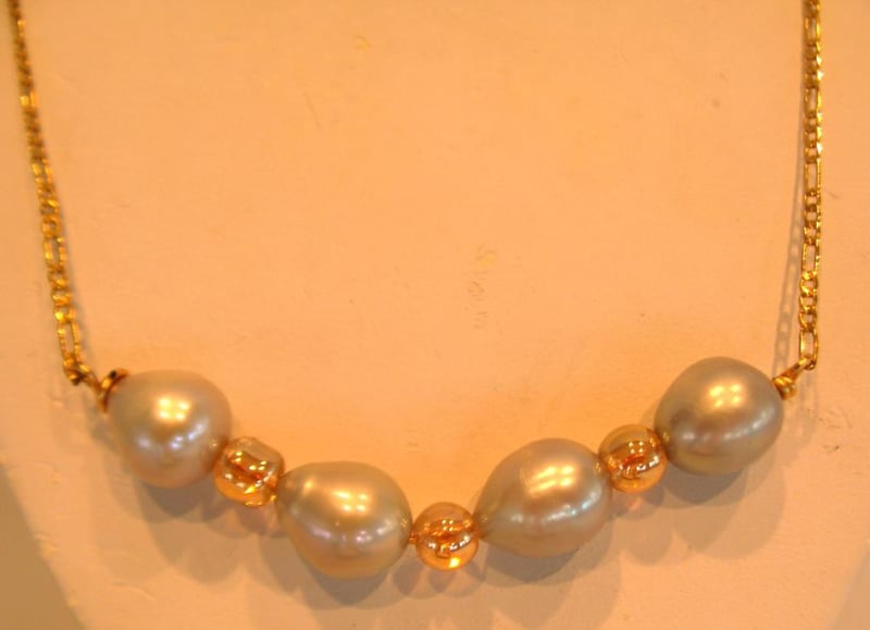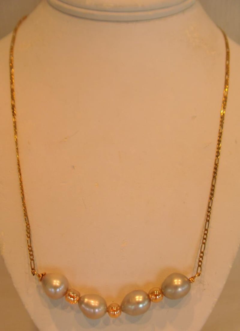 NATURAL SOUTH SEA PEARL & FAUX GOLD CHAIN NECKLACE 52 Cm Long. 586243+1
