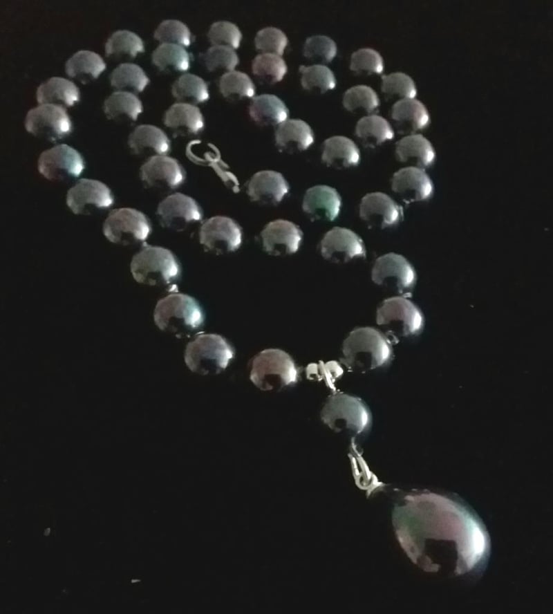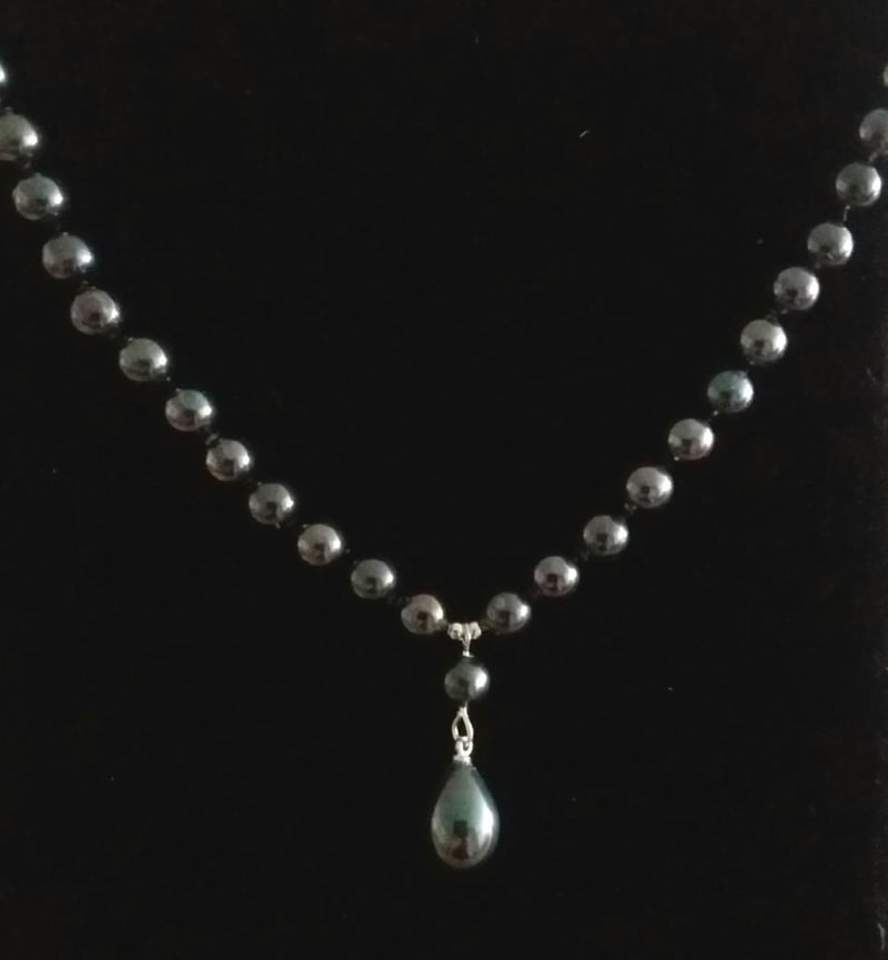 TAHITAN BLACK 8MM SEA SHELL NECKLACE WITH WATER DROP PENDANT