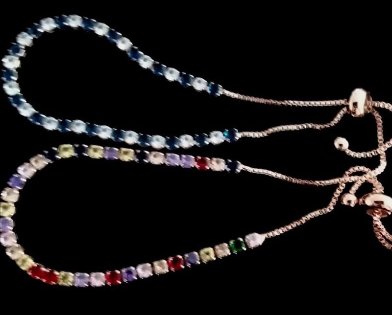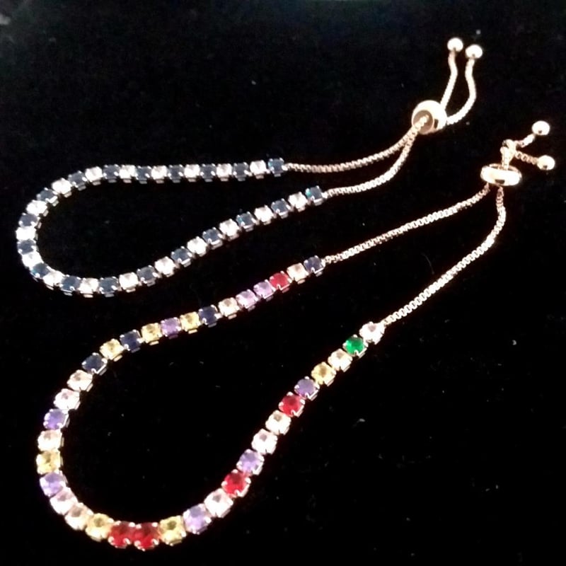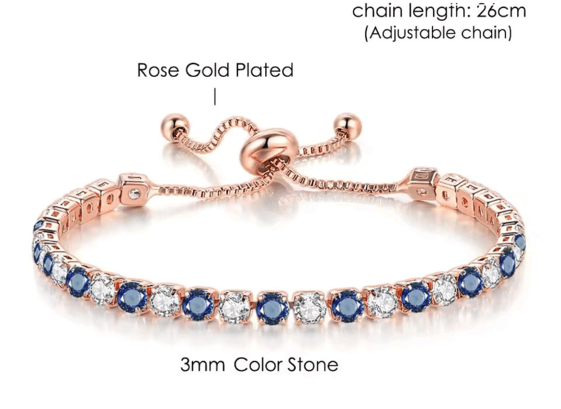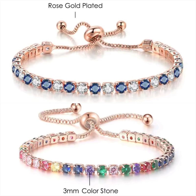 2 X ROSE GOLD STAINLESS STEEL TENNIS BRACELETS WITH MULTI COLOR CUBIC ZIRCONIAS