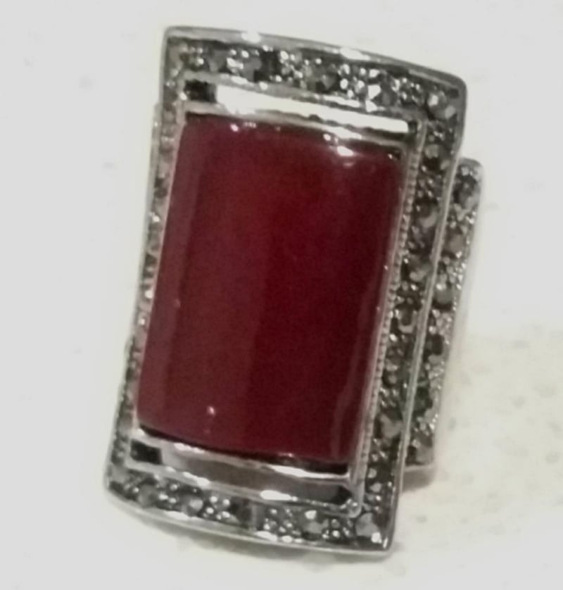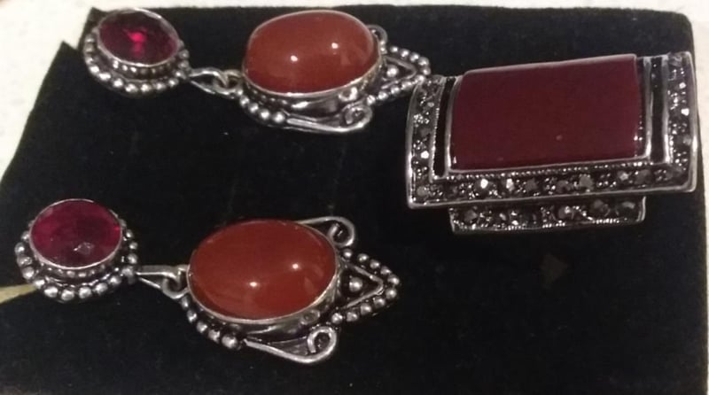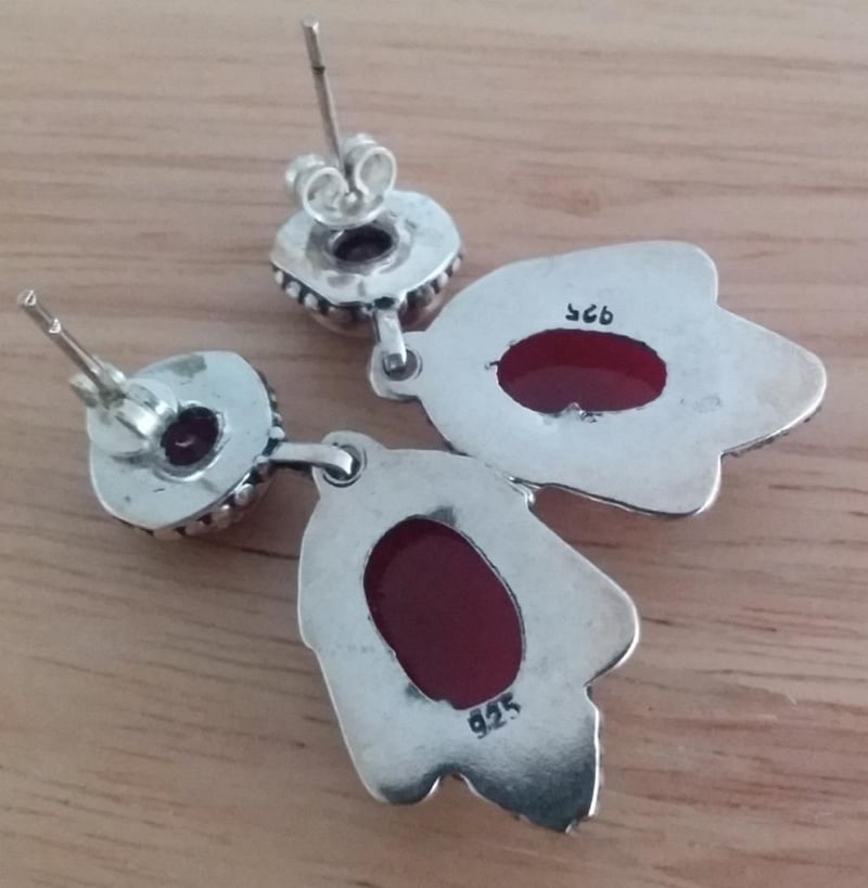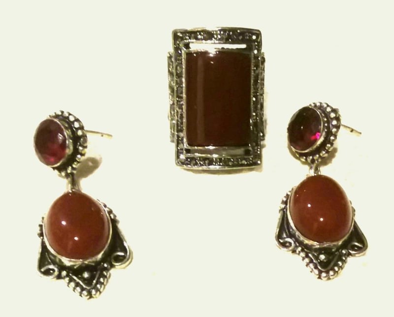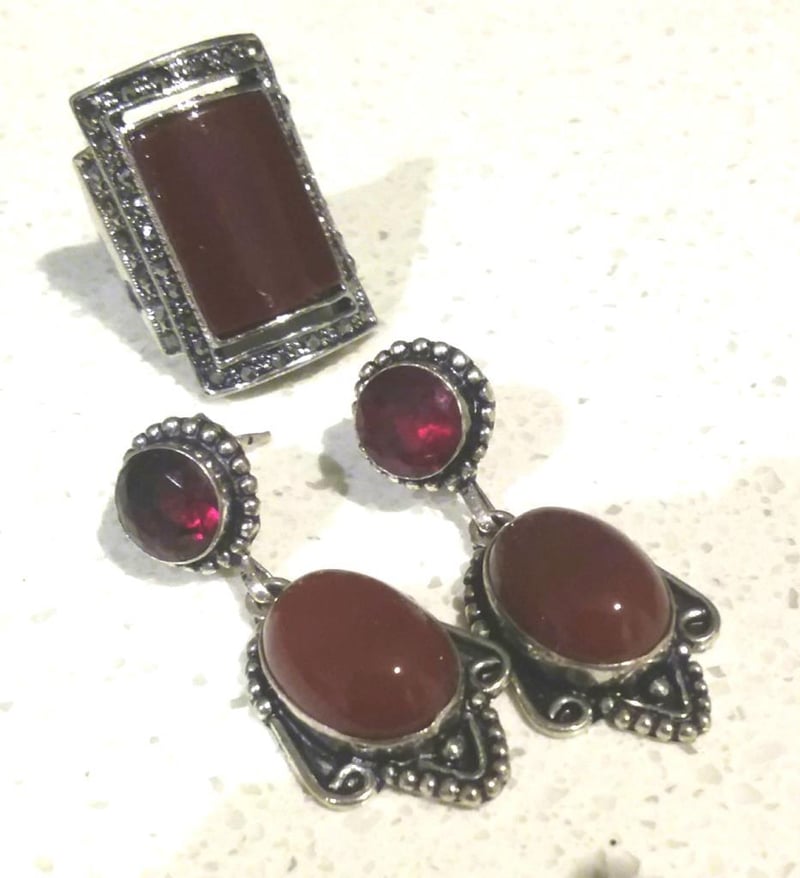 925 SILVER PLATED GEMSTONE CARNELIAN GARNET EARRINGS AND RING SIZE 6 Condition: Good - Refer Images 0162980+9FC