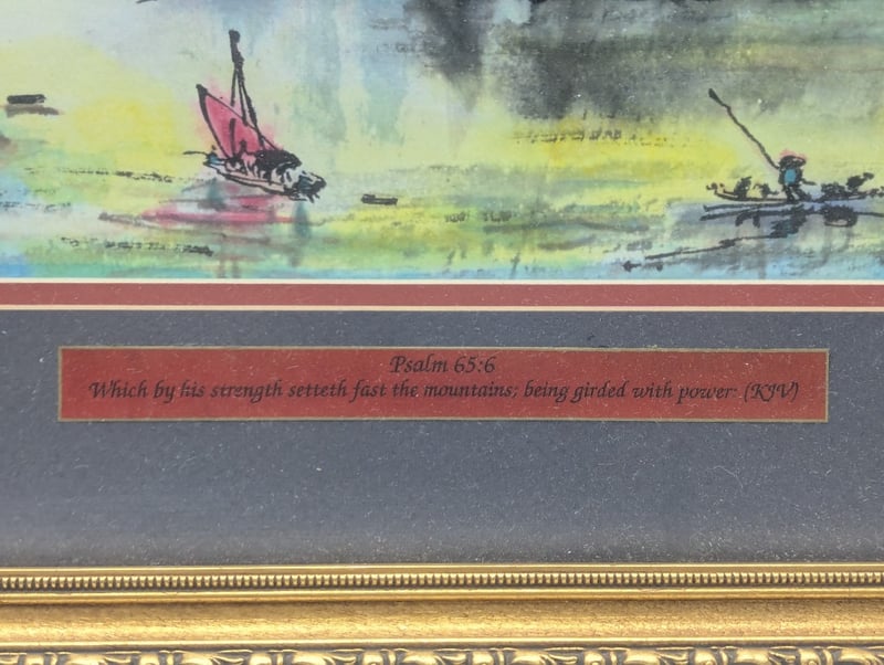 Plaque With Psalm 65:6 Quote, Chinese Lettering Upper Right