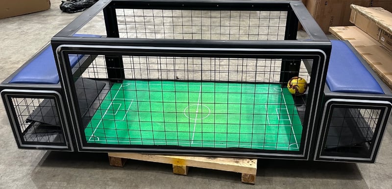 Football, Sitdown Amusement Cage, This is an epic two player game great for any venue. Known in Europe as Sub soccer, get this game on your floor. Ideal for home, business, schools and entertainment venues. The game is almost two years old and has LED lights to enhance the visual display.