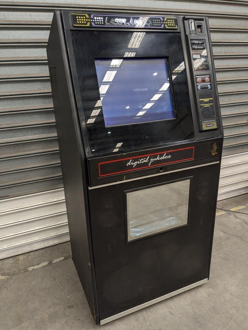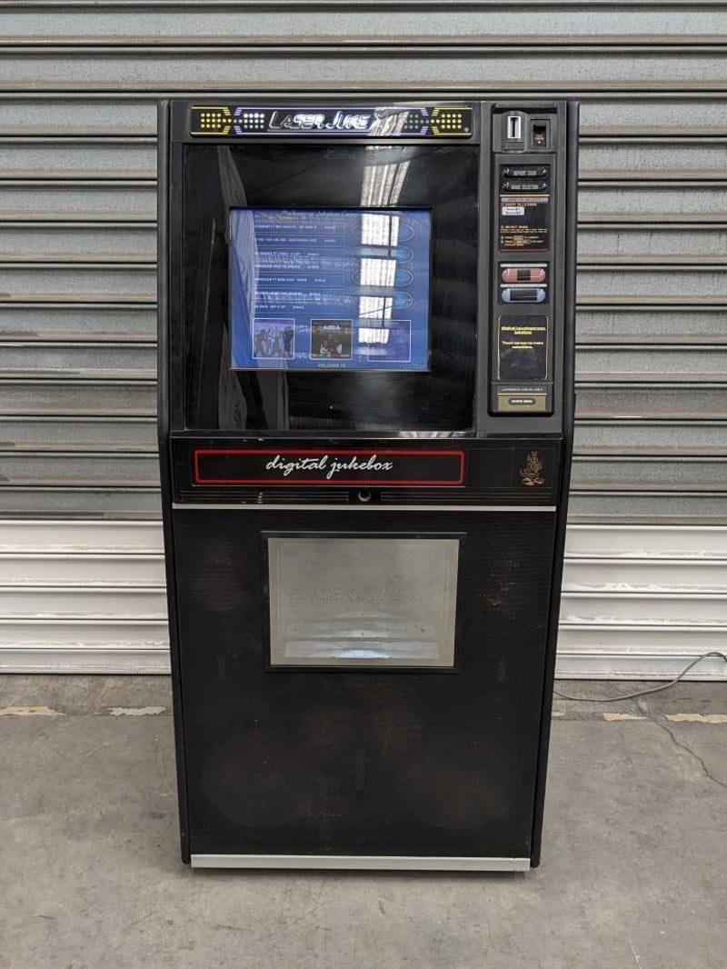 Digital Jukebox, Lazer Juke, Does not include manual, keys or cable, Vendor advises: JUKE BOX COIN OPERATED WITH 1000 PLUS SONGS, SET ON FREE PLAY, OR CAN BE USED TO OPERATE IT, SIMPLE MENU SYSTEM TO OPERATE Dimensions approx: 80cm W x 164cm H x 64cm D
