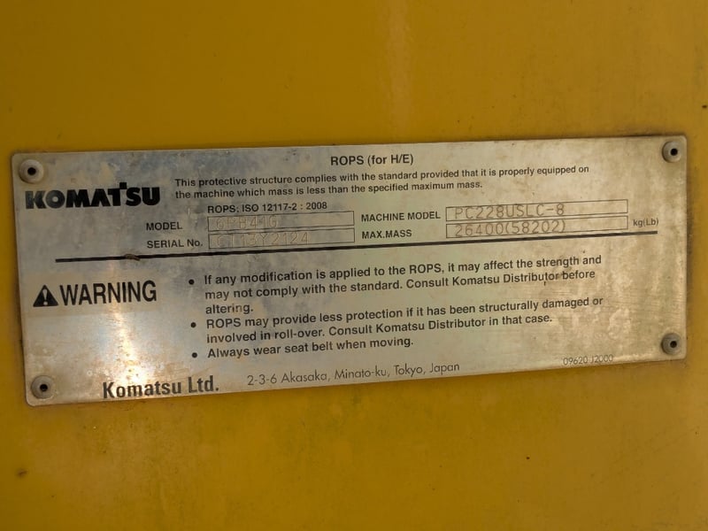 2011 Komatsu PC228USLC-8 Excavator & Attachments
