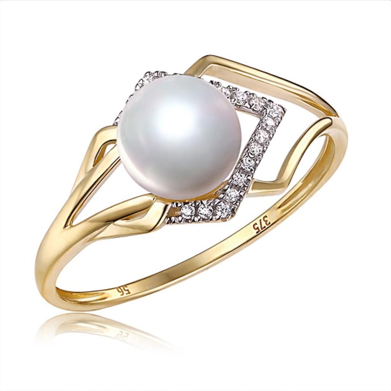 9Ct Yellow Gold Luxury Diamond & Natural White Button Pearl Ring Size 7. Every Woman Should Have One Of These. The Item Contains: Ring Size Is: 7
