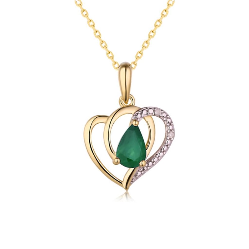 9Ct Yellow Gold Natural Diamond & Natural Emerald Necklace . Every Woman Should Have One Of These. The Item Contains: