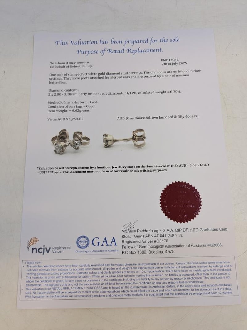 9CT WHITE GOLD DIAMOND STUD EARRINGS