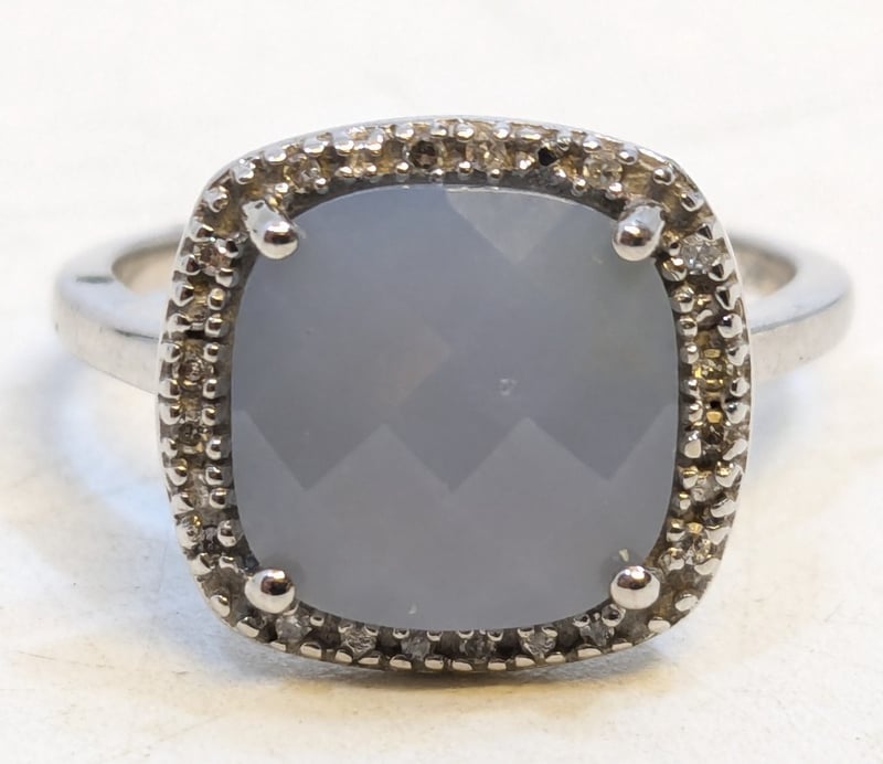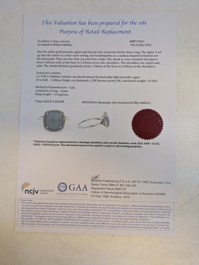 9CT WHITE GOLD LAVENDER AGATE DRESS RING