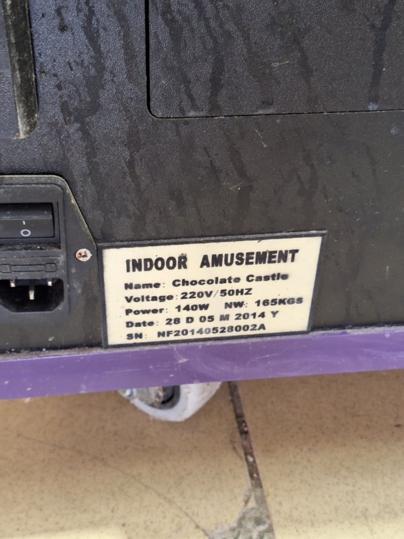 Acarde Machine - Chocolate CastleS/N: NF20140528002APurple Finish, Coin Mechanism, Signs Of Wear, No Keys, No Power CordDimensions H:195cm W:80cm D:85cm