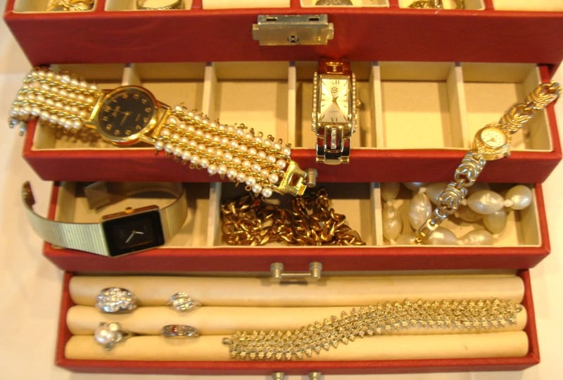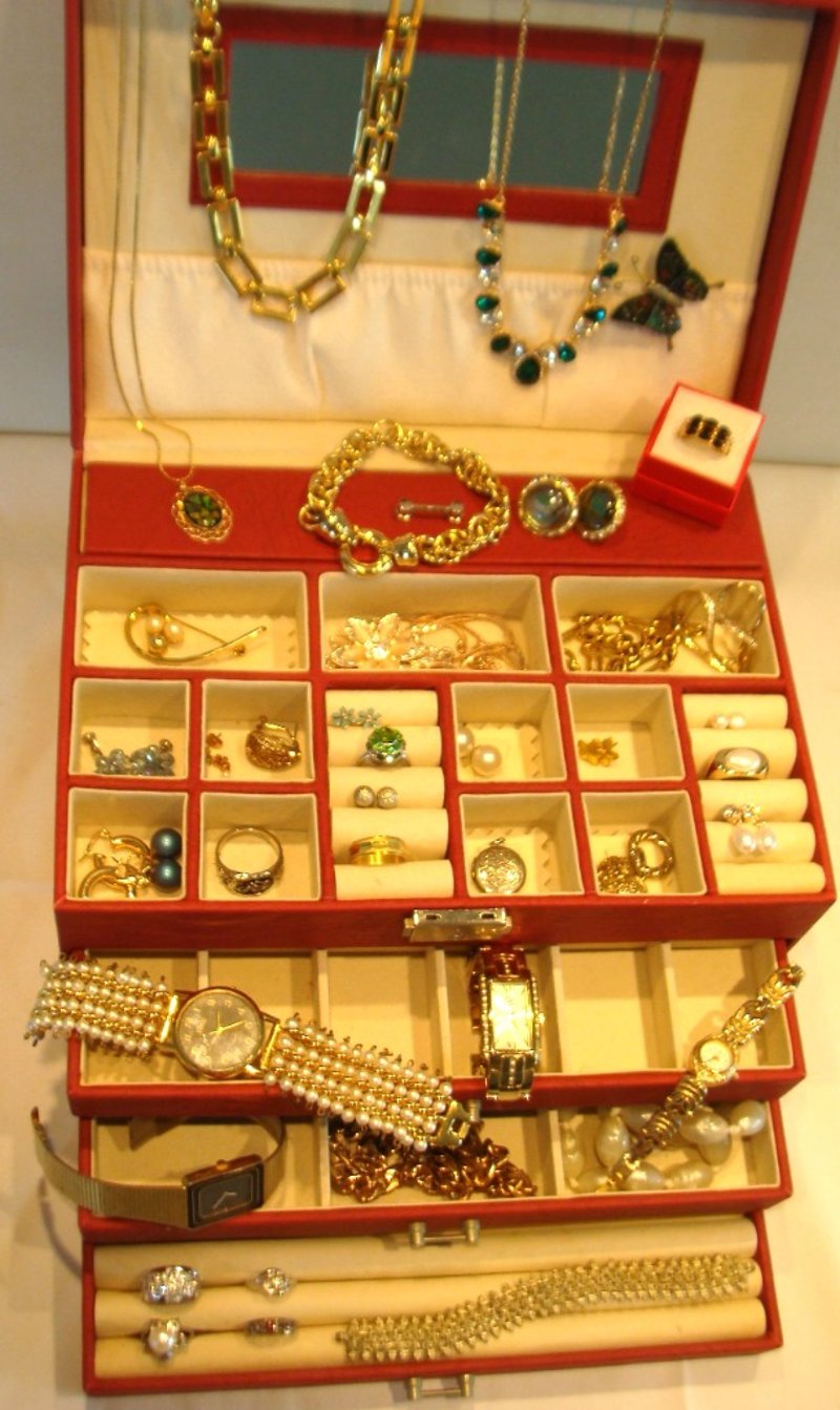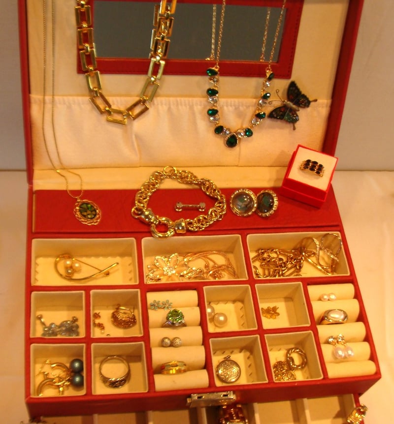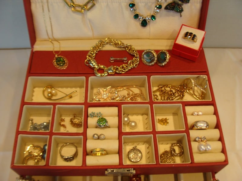 JEWELLERY BOX WITH ASSORTED JEWELLERY INCLUDES VINTAGE, NATURAL PEARLS, NATURAL OPAL, STERLING SILVER & MORE