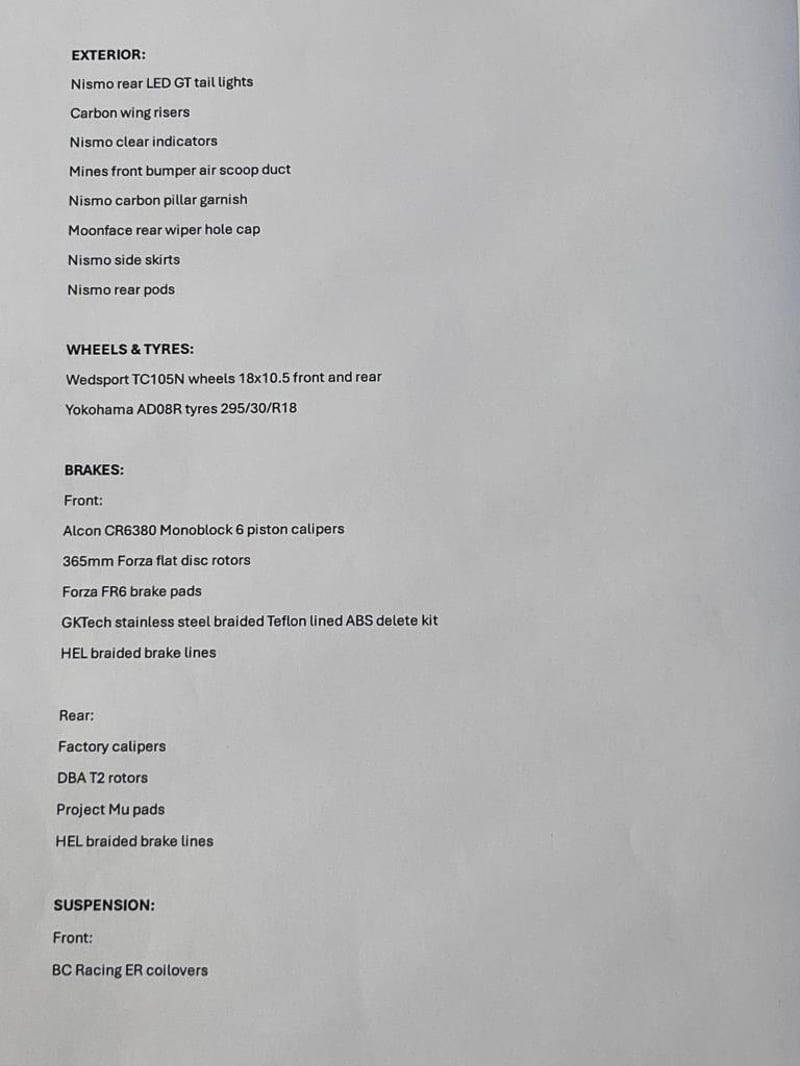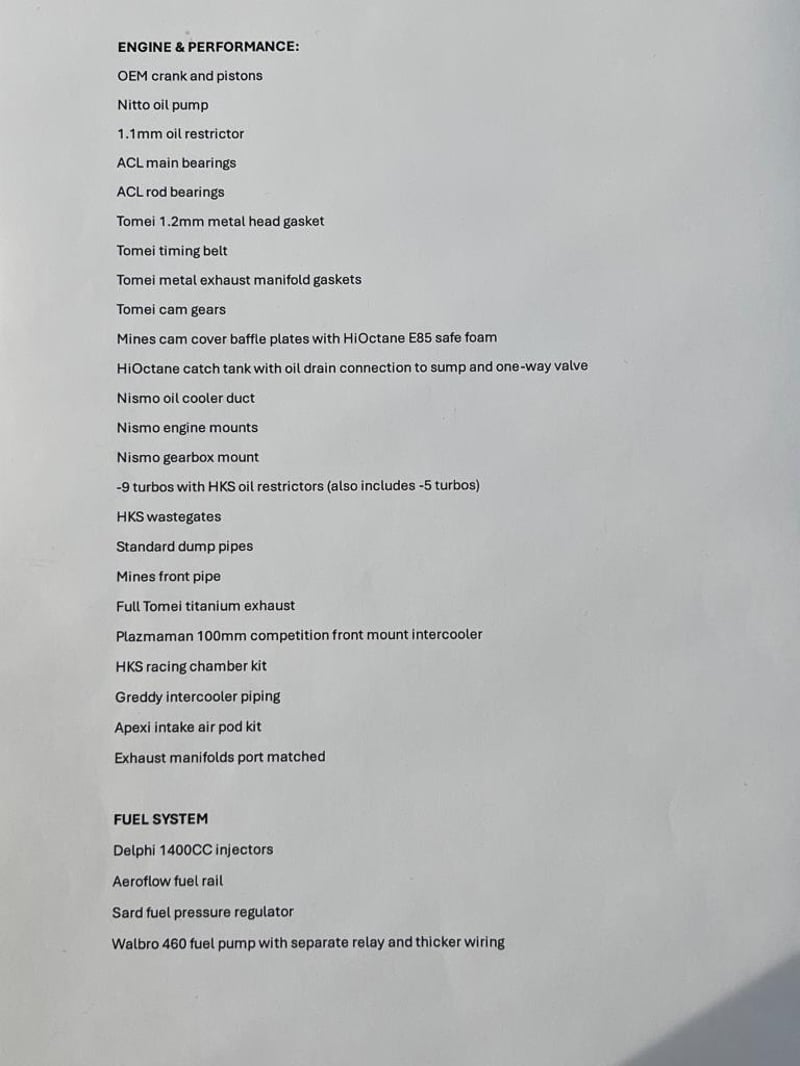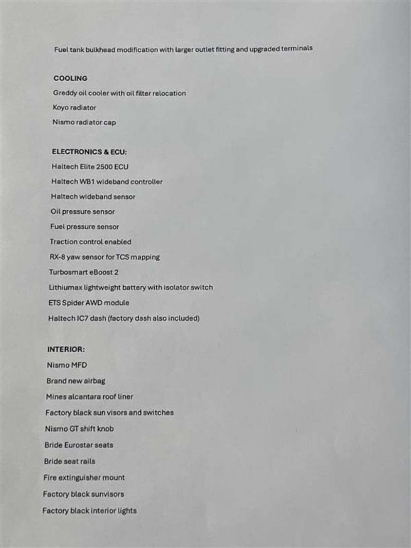 Description/Extras: Extensive performance build. Vendor reports full list of modifications including upgraded engine internals, turbo system, fuel system, cooling, electronics, suspension, braking, interior and exterior enhancements. Highly developed example with premium components throughout.