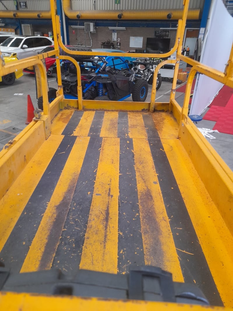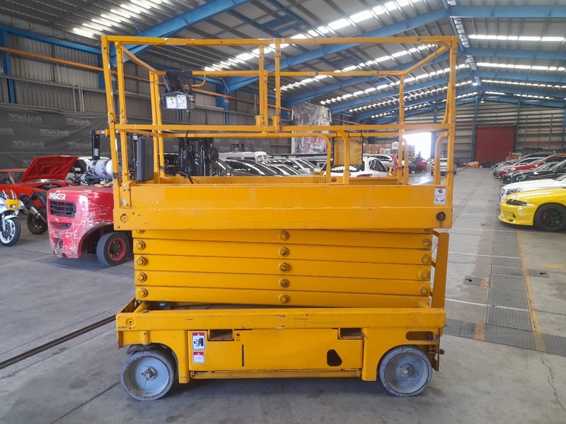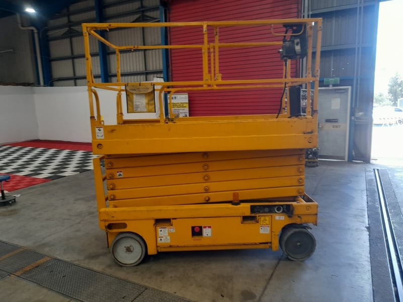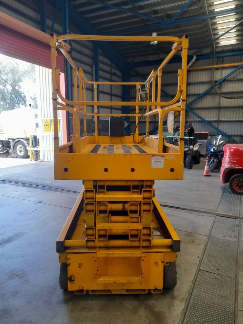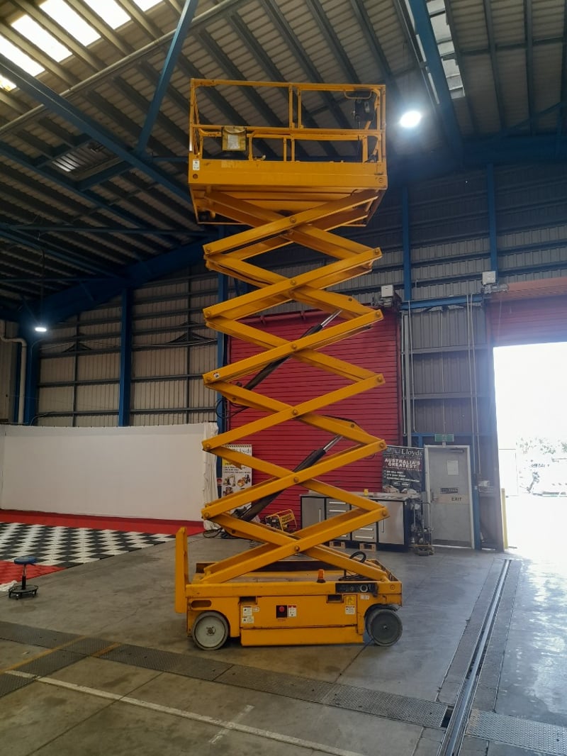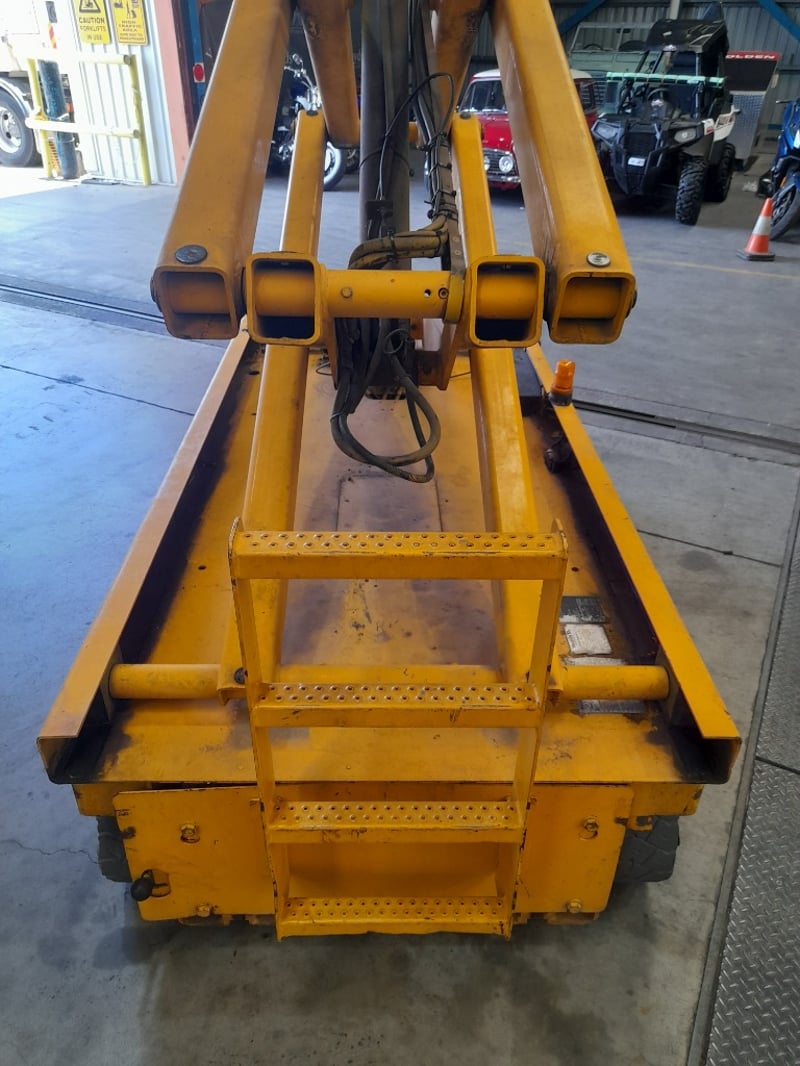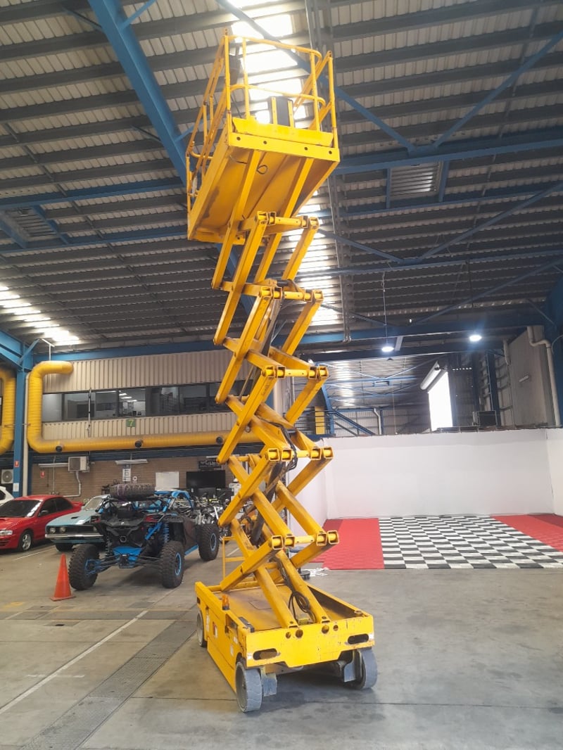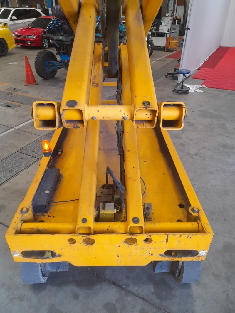 Description: scissor lift, electric drive, working condition, Surface rust in place of missing paint in areas
