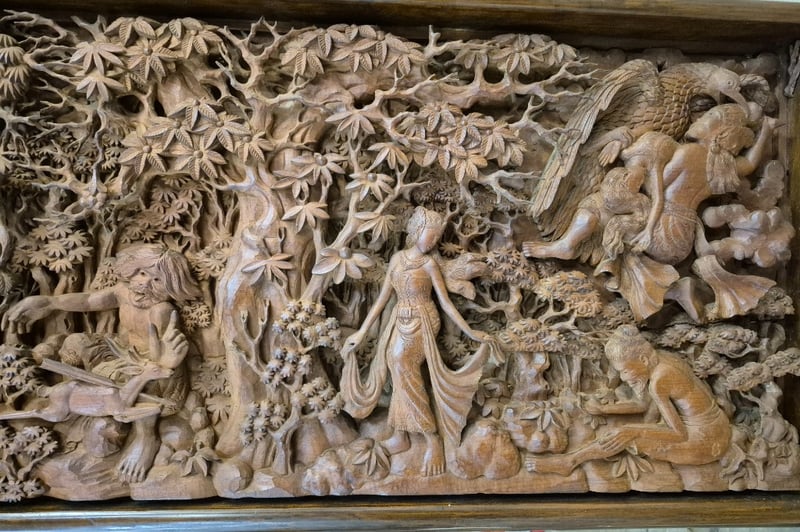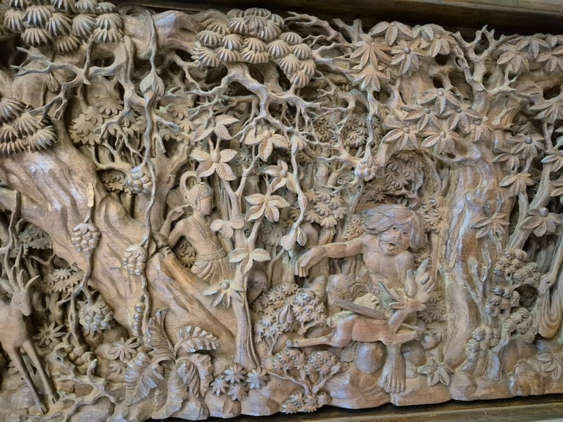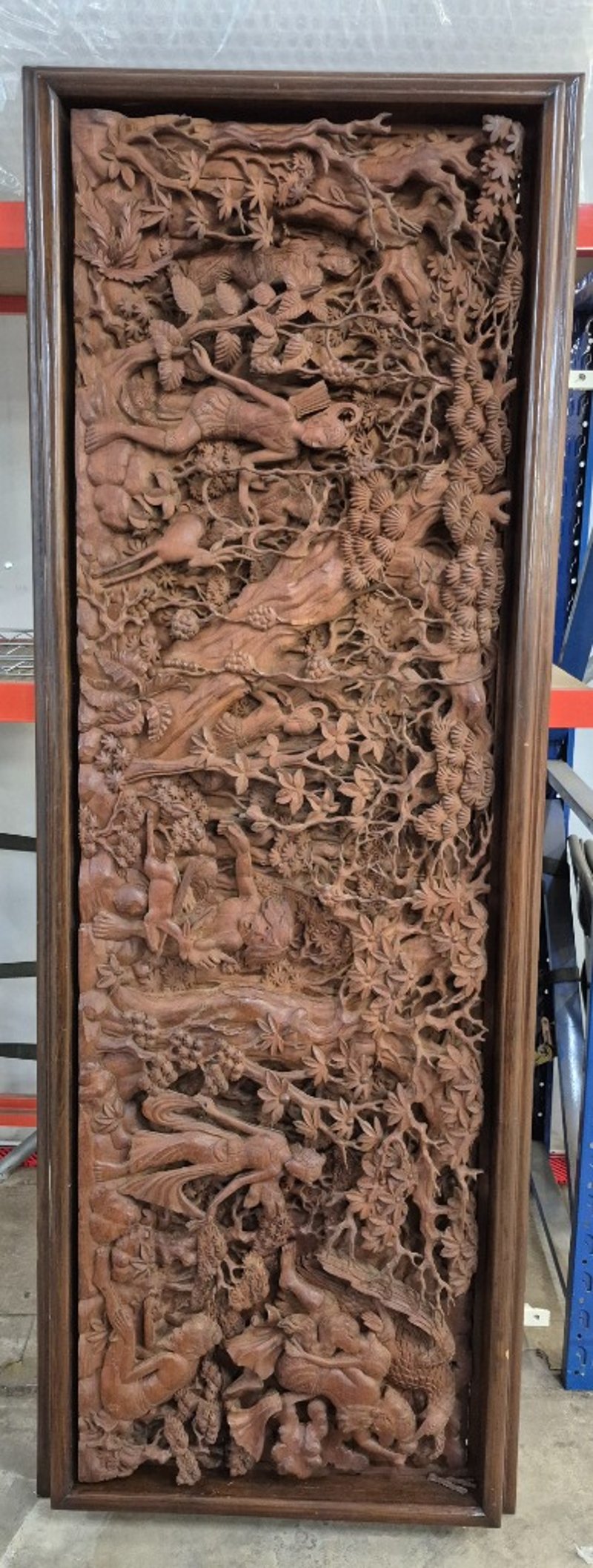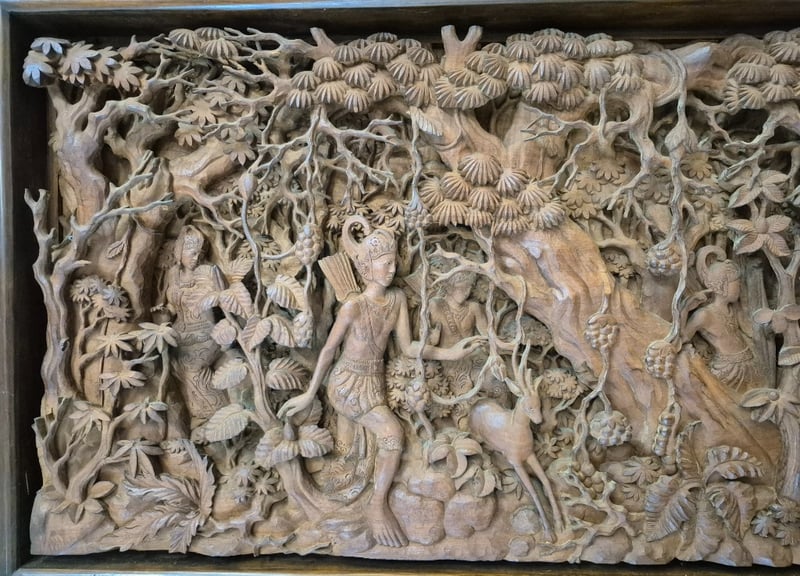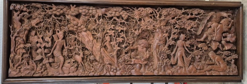 ANTIQUE TIMBER CARVING FROM JAVA, HANDCRAFTED BY JAVANESE HIGHLY SKILLED CARVERS. Item Size: Height: 50cm, Width: 210cm, Depth: 11cm, Weight: 30Kg This Large And Beautiful Antique Carving Displays A Background Of Dense Rainforest Housing Mythological Figures, Guardians And Animals Telling A Story Of A Princess Being Abducted From Her Kingdom. This Piece Is Unique, Intricate And Highly Detailed Condition: Good - Refer To Images 586260+1