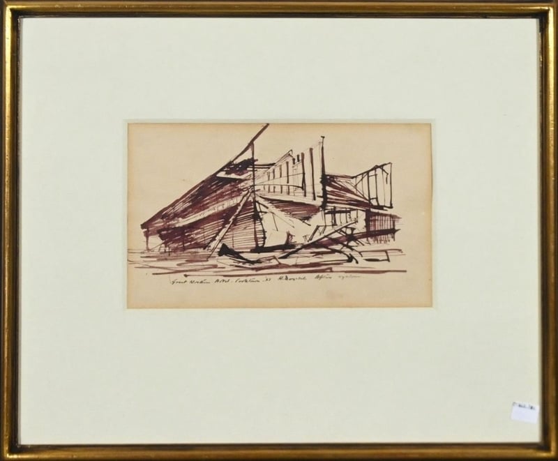 Provenance: The Small Size Means Nothing To The Expressive Lines That Are Towards Abstraction As Drysdale Deals Here With His Favorite Topic Buildings Of Bars , Hotels Etc, In Remote Places In Australia That He Is So Famous For.( Sofala; West Wayalong ; The Cricketers And More.