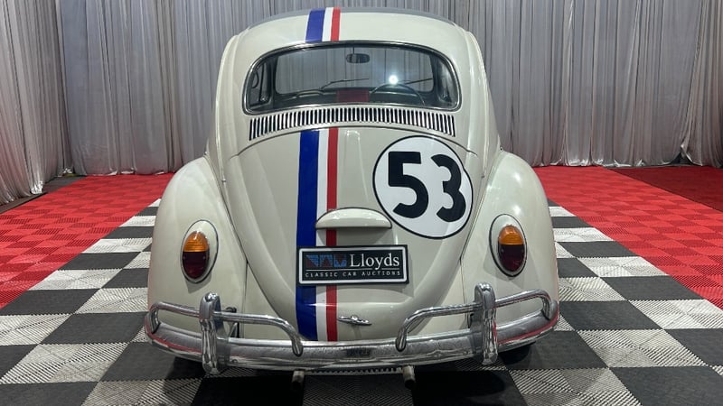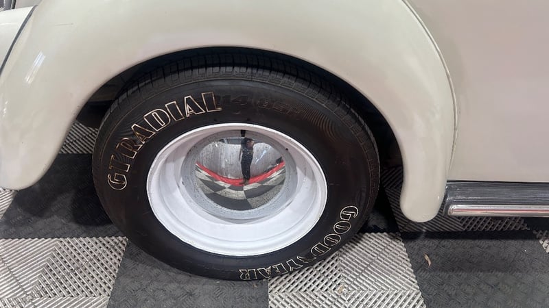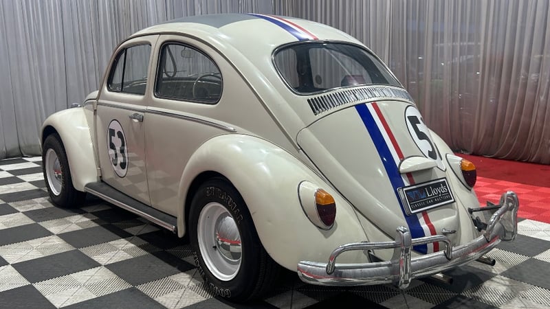 1966 Volkswagen Beetle two-door sedan finished in white. Rear-wheel drive configuration powered by a 1.2‑litre petrol engine paired with a four‑speed manual transmission. Odometer indicating 13,329 miles.