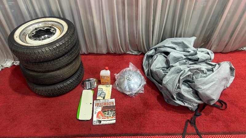 This classic Beetle presents as a well-kept example with a strong selection of original accessories and documentation. Features include alloy wheels and the owner’s manual, along with three keys. The vehicle is supplied with four spare wheels, four genuine Volkswagen hub caps, a workshop manual, rear sun visor, two light lids, and two additional glove box lids. A comprehensive package ideal for enthusiasts seeking originality, spares, and documentation. Inspection is recommended to fully appreciate condition and completeness.