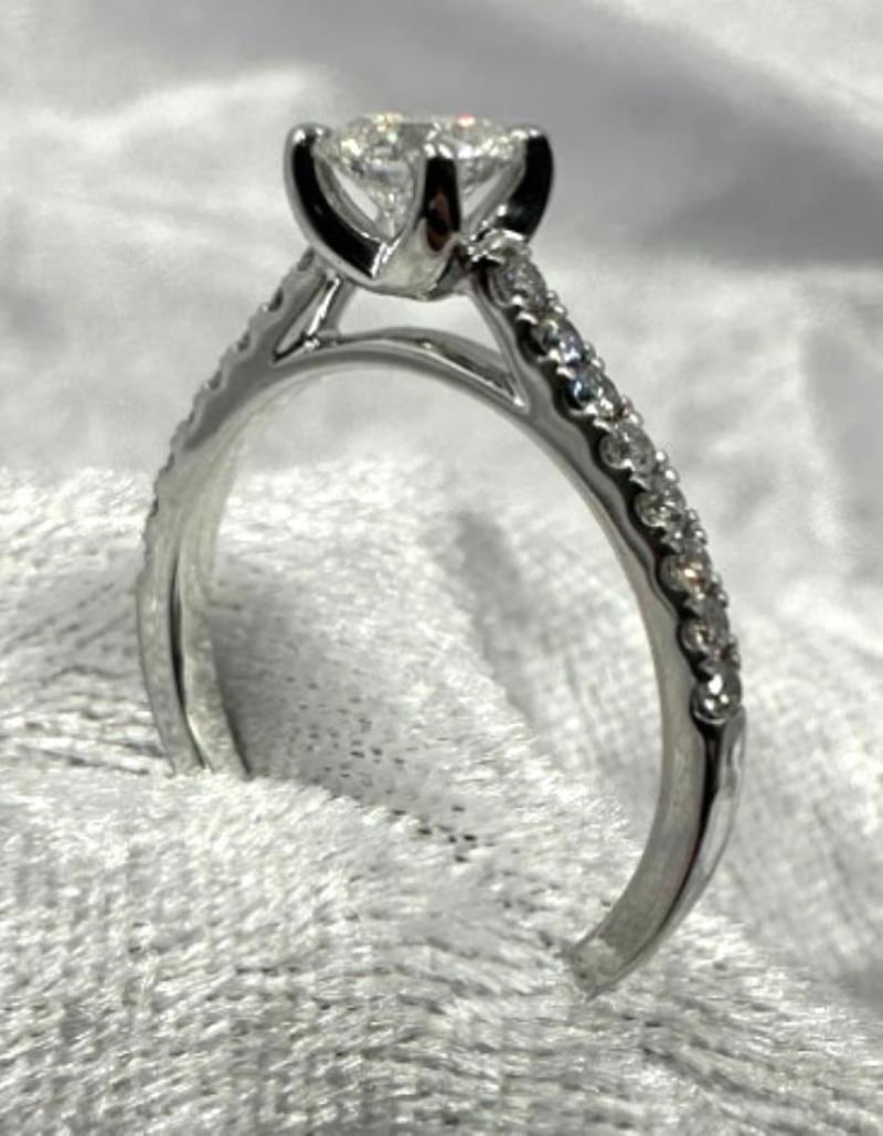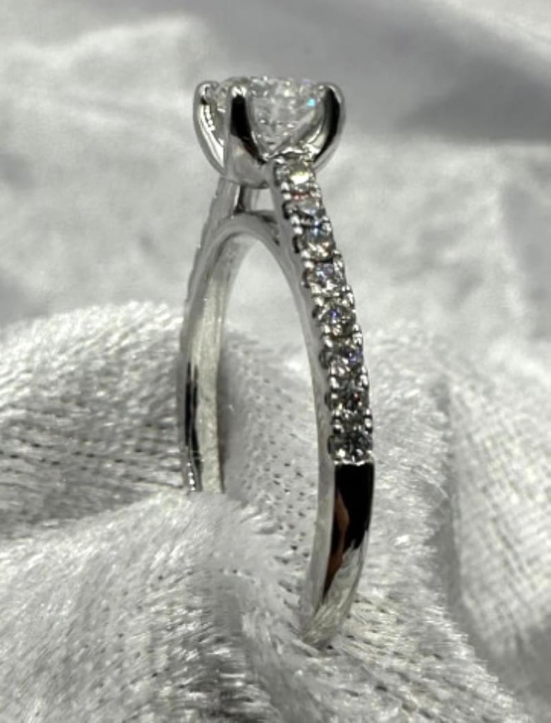 Featuring: Centre Stone: Gia Certified Round Brilliant Natural Mined Diamond. Specs: 0.70 Ct D/Si2 Ex/Ex/Ex Nil Fluorescence (100% Eye Clean And Non Cloudy) 100% Eye Clean And Non Cloudy