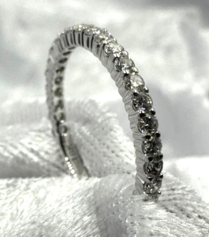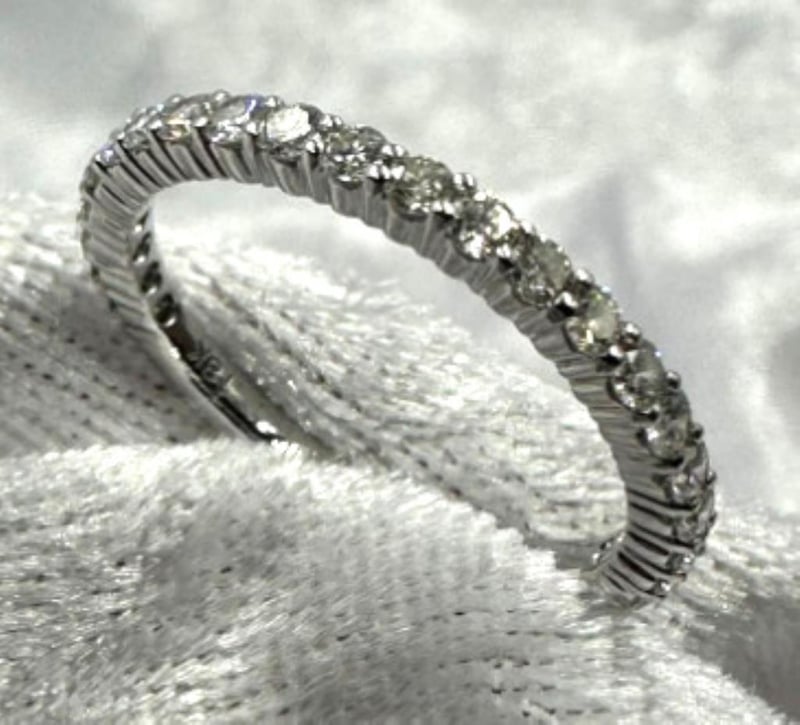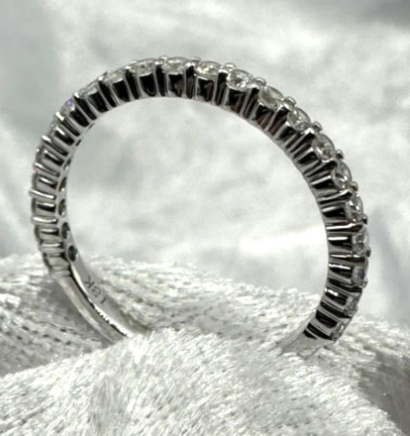 18K WHITE GOLD SHARED CLAW DIAMOND BAND RING Featuring: Diamonds: 22 X 0.03 Ct Round Brilliant Stones. 0.66 Total Carat Weight.Shape: Round Brilliant, Natural Diamonds Specs: F/Si1 Minimum Quality100% Eye Clean And Non CloudySetting: 18K White Gold RingWeight: 2.4 GramsSize PRing Can Be Resized Between M 1/2 - S 1/2 Condition: Good - Refer Images 0163051+2CROSS DOCK