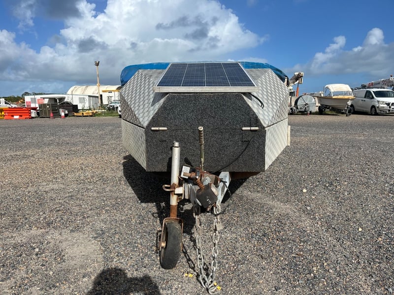 Description: Gal Chassis, 4wd, Solar, 130ah Battery, 12V throughout, Rear Kitchen, Inside has storage.