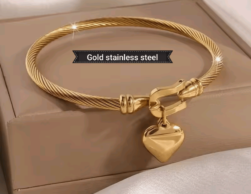 GOLD STAINLESS STEEL HEART TWISTED BANGLE