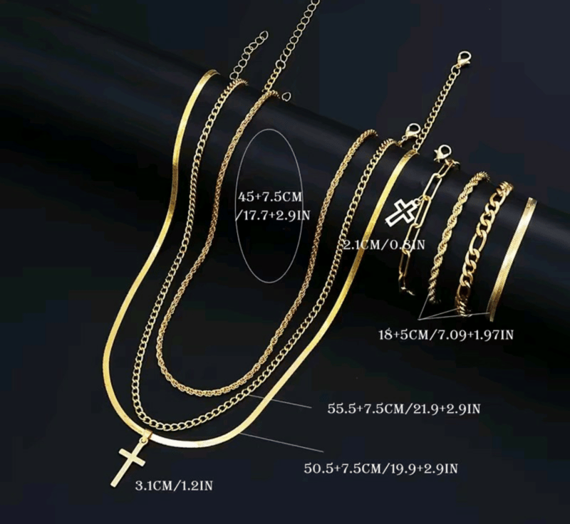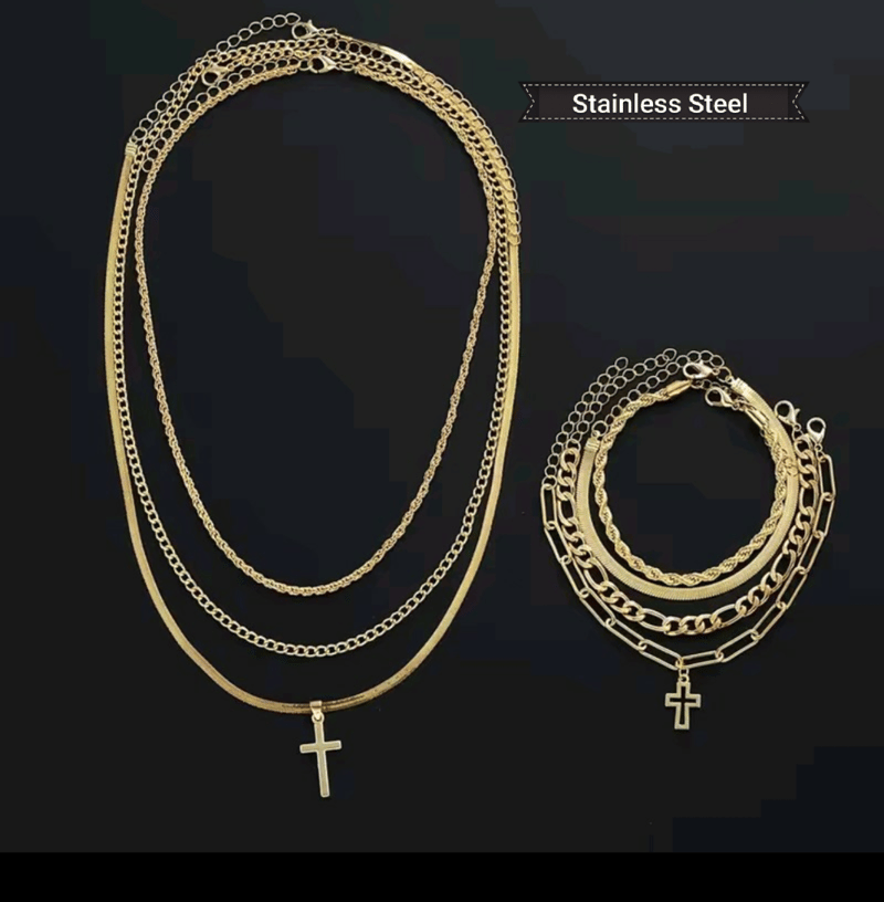 7 X PIECES GOLD STAINLESS STEEL UNISEX NECKLACE AND BRACELET SET