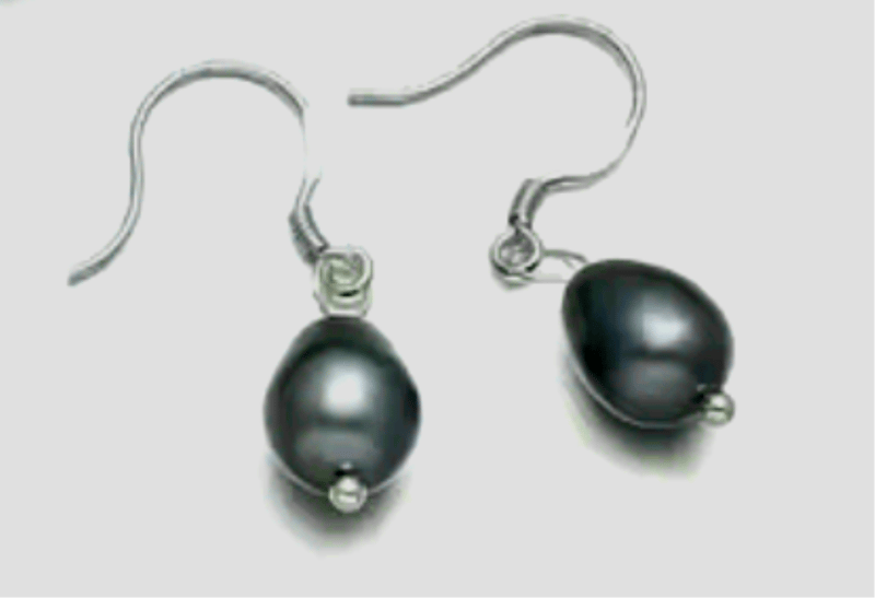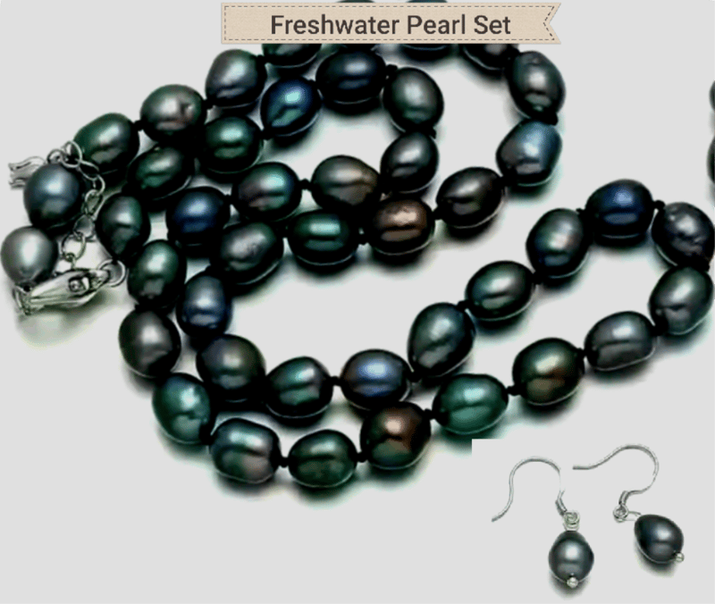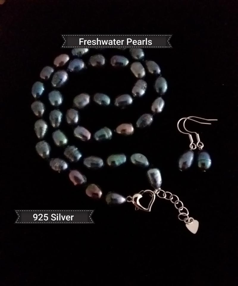 TAHITAN BLACK 8-9 MM FRESHWATER PEARL NECKLACE EARRINGS SET 925 SILVER