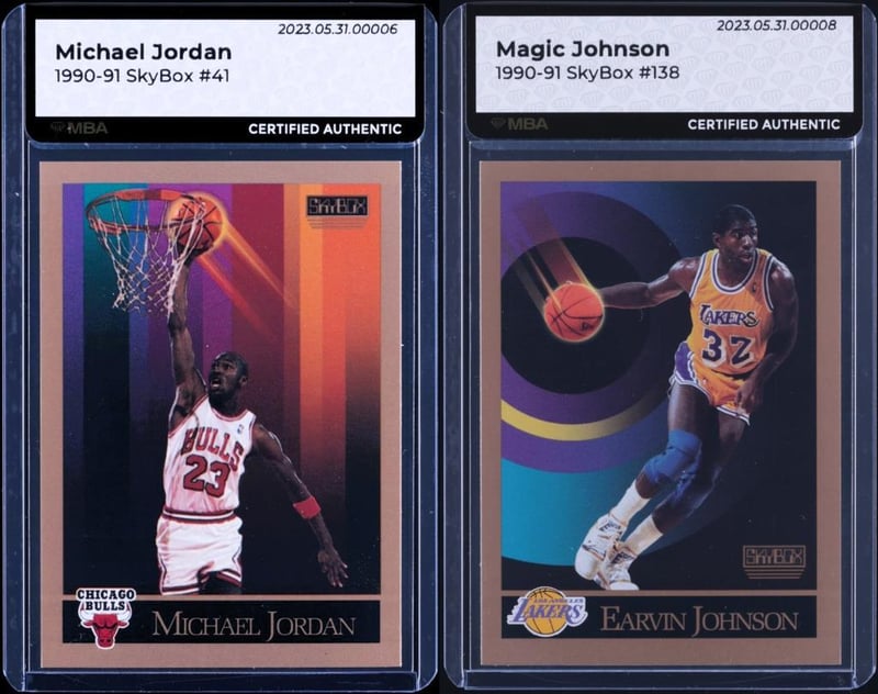 This Auction Lot Comprises Two Mba Authenticated 1990 Skybox Basketball Trading Cards, Each Recognised Examples From A Foundational Modern-Era Basketball Release.