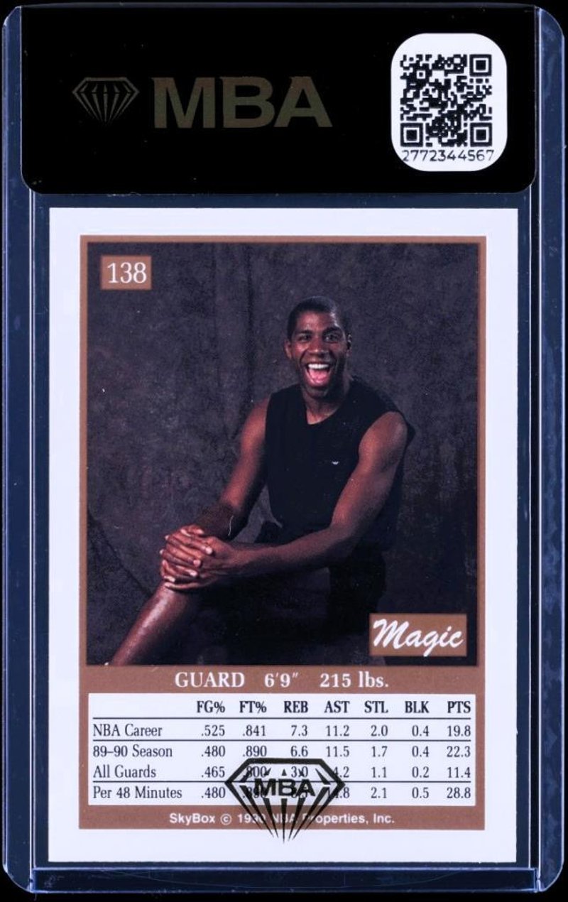 - Magic Johnson #138: The Second Card Is The 1990 Skybox Basketball Magic Johnson #138, Depicting Magic Johnson, One Of The Most Influential Players In League History. This Card Is Also Mba Authenticated, Providing Assurance Regarding Its Legitimacy.