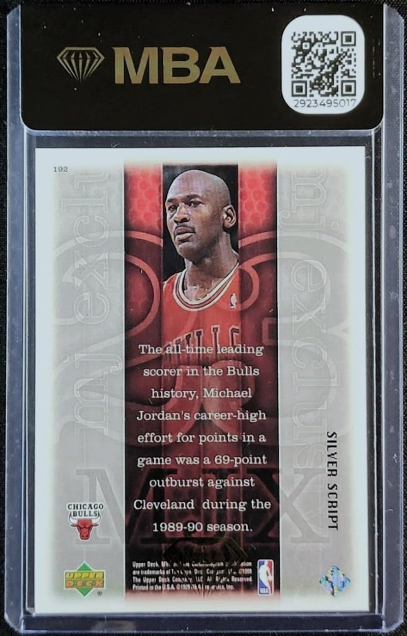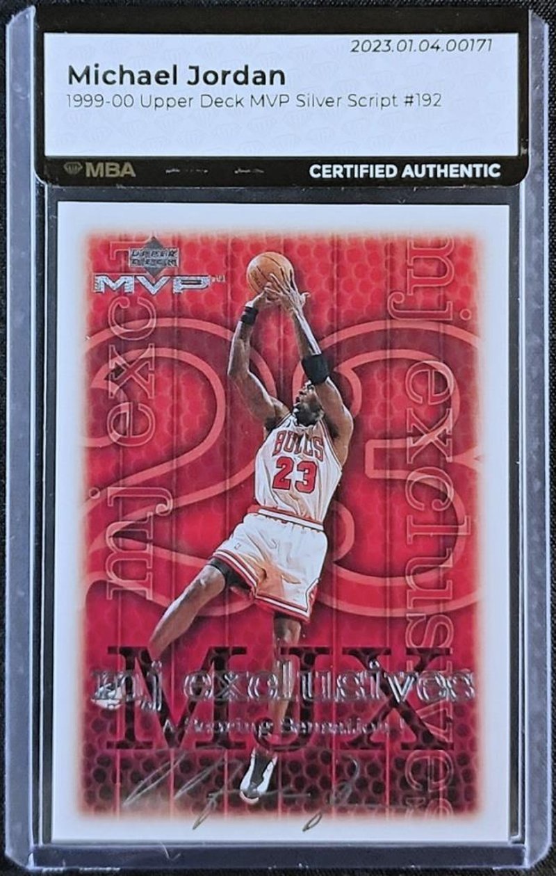 - 1999 Upper Deck Silver Script Autograph Michael Jordan: The First Card Is The 1999 Upper Deck Mvp Silver Script Michael Jordan #192, Featuring Michael Jordan During The Later Stage Of His Professional Career. The Silver Script Parallel Is Recognised For Its Limited Style Presentation Within The Upper Deck Mvp Release And Is Supported By Mba Authentication, Confirming Its Status As An Authenticated Collectible.