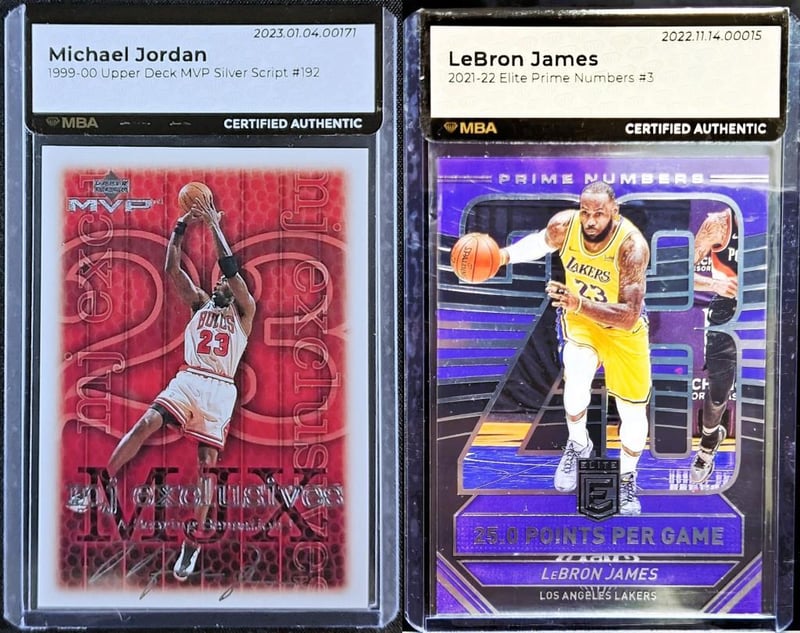 This Auction Lot Comprises Two Mba Authenticated Basketball Cards, Each Representing A Defining Figure From Successive Eras Of The Nba And Issued More Than Two Decades Apart.