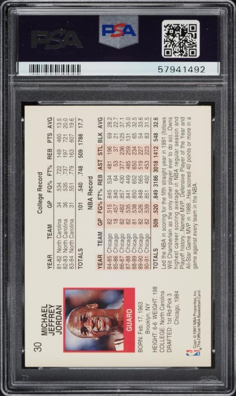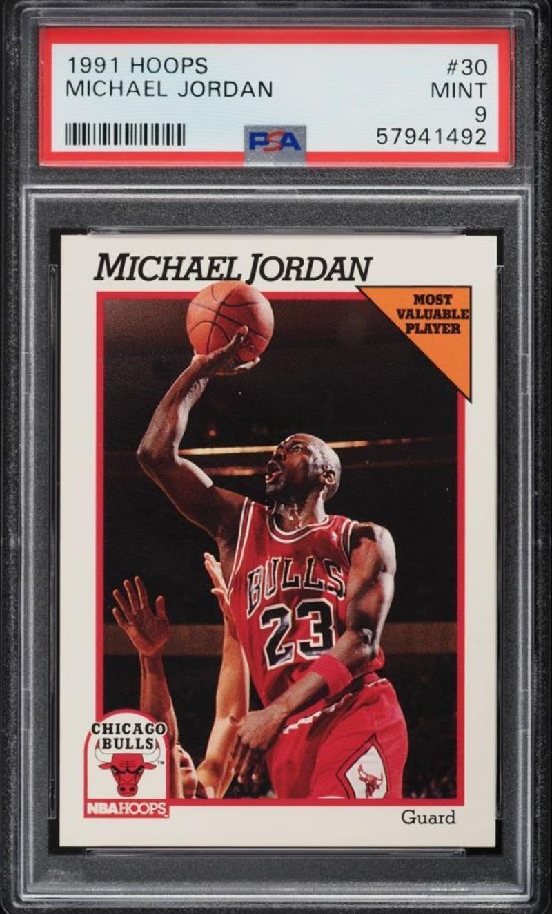 1991 HOOPS MICHAEL JORDAN #30 PSA 9 MINT - CHICAGO BULLS #23 NBA BASKETBALL LEGEND!This Auction Item Comprises A 1991 Hoops Michael Jordan #30, Professionally Graded Psa 9 Mint.The Card Features Michael Jordan During The 1990–91 Nba Season, A Period Widely Regarded As A Defining Phase Of His Professional Career. Issued As Part Of The 1991 Hoops Basketball Release, The Card Represents A Well Established Early 1990S Series That Remains Consistently Collected.The Psa 9 Mint Grade, Assigned By Professional Sports Authenticator, Reflects A High Standard Of Overall Condition, Including Strong Centring, Clean Edges, Sharp Corners, And A Well Preserved Surface. Cards From This Production Era Achieving This Grade Are Generally Regarded As Condition Sensitive.This Item Is Suitable For Collectors Seeking A Graded Example Of A Michael Jordan Card From A Championship Period, Or For Inclusion Within A Broader Professionally Graded Basketball Card Collection Focused On Historically Significant Players.Condition: Good - Refer To Images584401+4