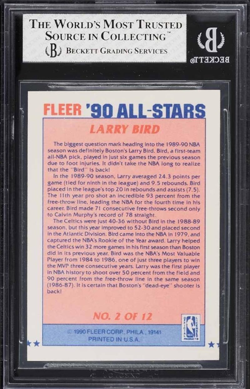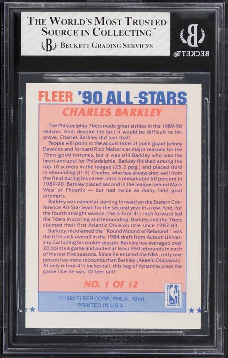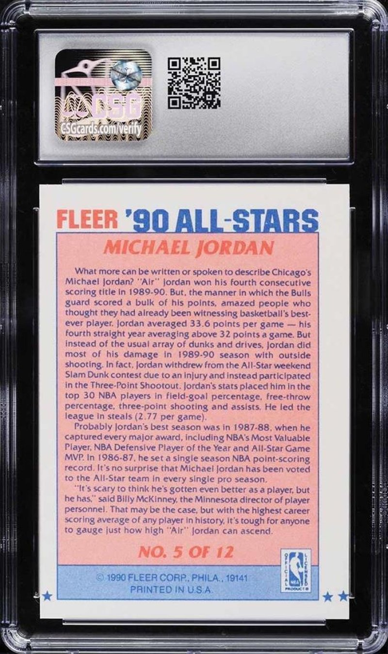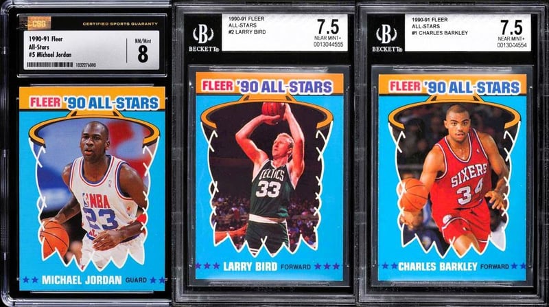 HALL OF FAME ALL-STARS TRIO - MICHAEL JORDAN, LARRY BIRD AND CHARLES BARKLEY - NBA BASKETBALL AUTHENTIC & GRADED CARDSThis Auction Lot Comprises Three Professionally Graded 1990 Fleer All-Stars Basketball Cards, Each Featuring A Hall Of Fame Player Recognised For Their Contribution To The Nba During The Late 1980S And Early 1990S.- 1990 Fleer All-Stars Michael Jordan: The First Card Is The 1990 Fleer All-Stars Michael Jordan #5, Graded Csg 8 Nm-Mt, Featuring Michael Jordan At The Height Of His Competitive Peak. The Csg Near Mint To Mint Grade Reflects Solid Overall Condition, Consistent With Careful Handling And Preservation.- 1990 Fleer All-Stars Larry Bird: The Second Card Is The 1990 Fleer All-Stars Larry Bird #2, Graded Bgs 7.5 Nrmt+, Depicting Larry Bird During The Latter Stages Of His Distinguished Career. The Grade Indicates Above Average Condition, With Typical Minor Wear Associated With Cards From This Period.- 1990 Fleer All-Stars Charles Barkley: The Third Card Is The 1990 Fleer All-Stars Charles Barkley #1, Also Graded Bgs 7.5 Nrmt+, Featuring Charles Barkley, One Of The Most Dominant Forwards Of His Era. As Card Number One In The All-Stars Subset, This Example Holds Additional Presentation Appeal.Collectively, This Trio Represents A Well Balanced And Historically Important Grouping From A Single Iconic Insert Set, Graded By Recognised Third Party Services. The Lot Is Suitable For Collectors Seeking Established Hall Of Fame Players, Consistent Era Representation, Or A Curated Acquisition Of Graded All-Stars Material From The Early 1990S.Condition: Good - Refer To Images584401+5