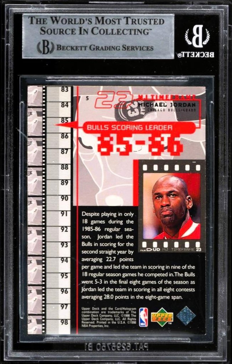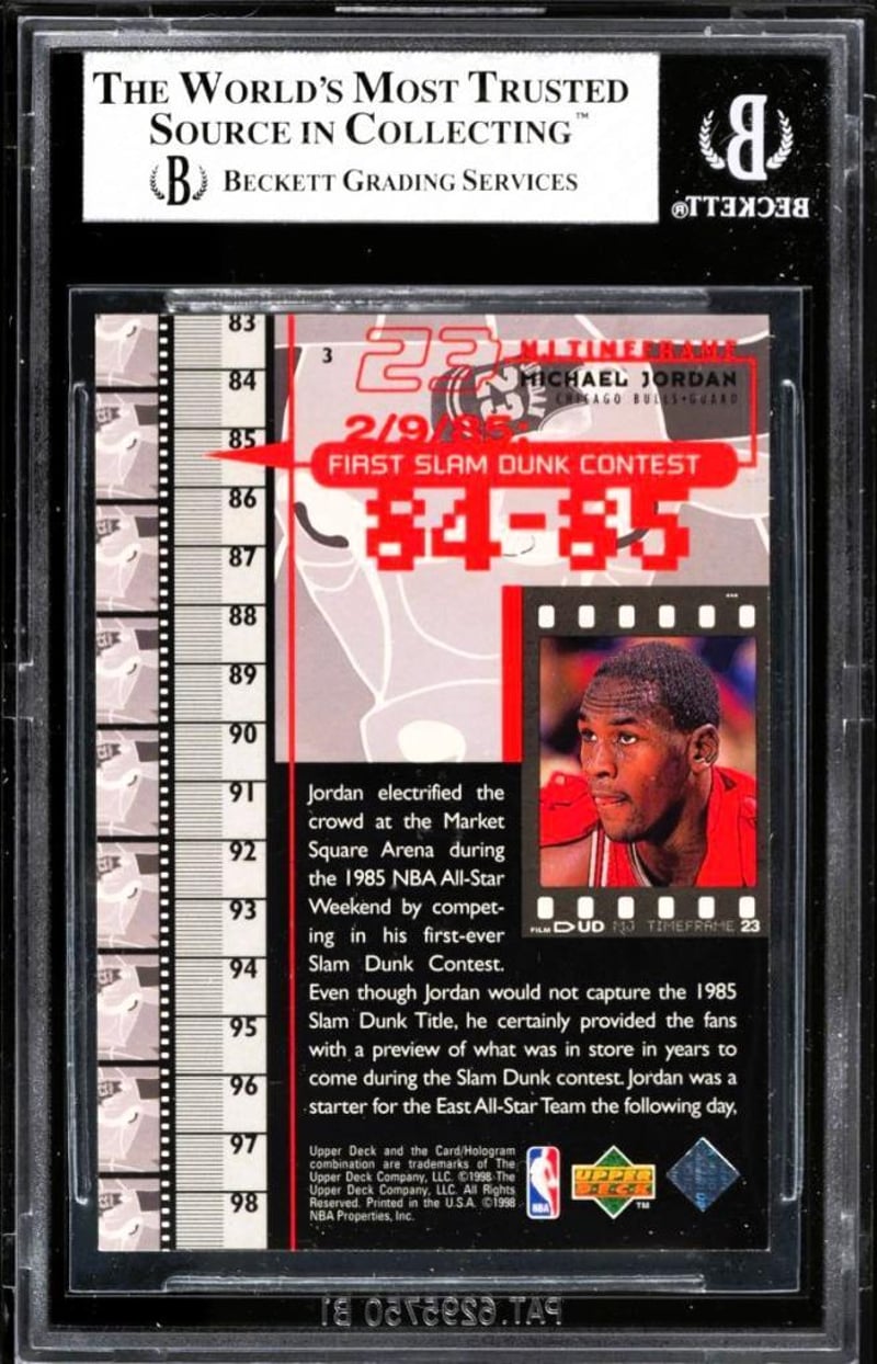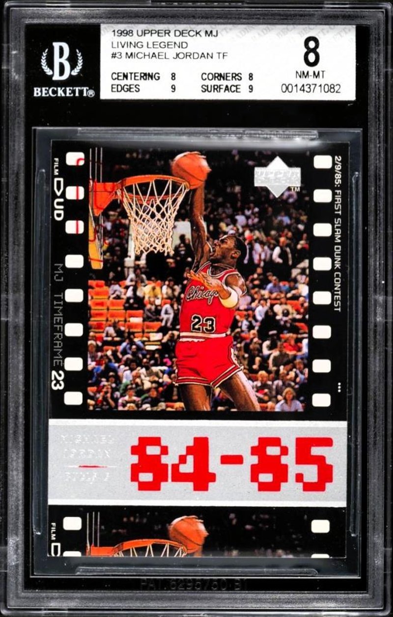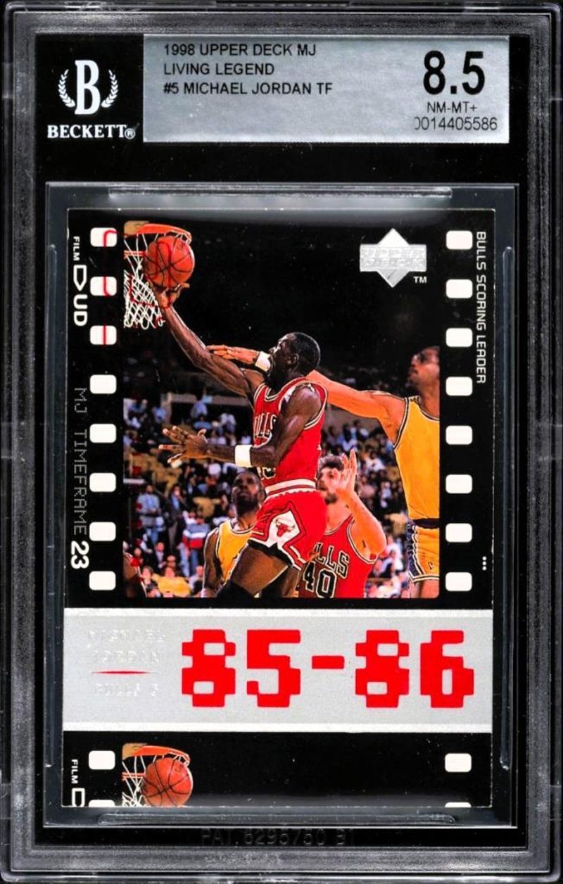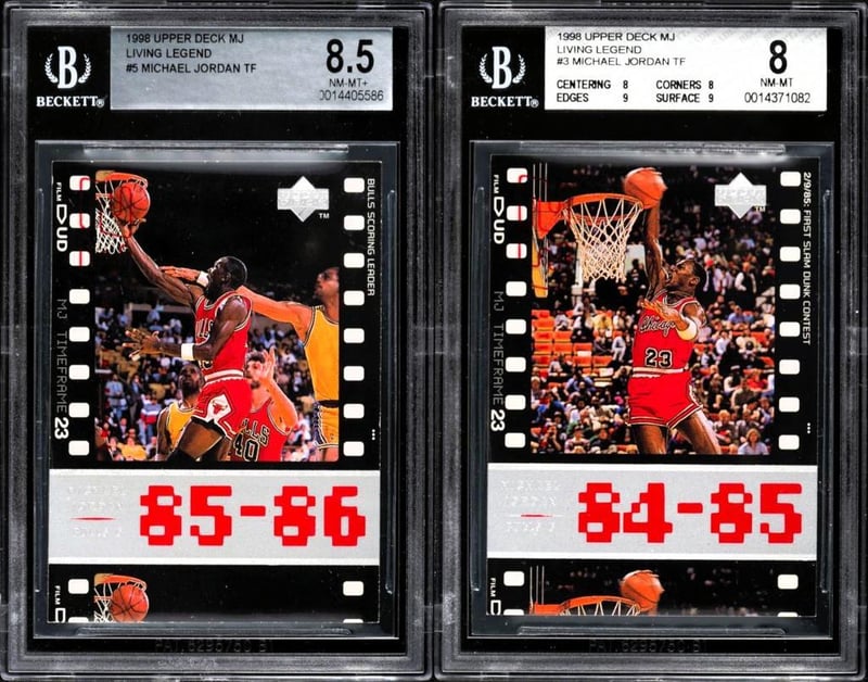 MICHAEL JORDAN LIVING LEGEND DUO SET - GRADED UPPER DECK INSERTS - CHICAGO BULLS NBA BASKETBALLThis Auction Lot Comprises Two Professionally Graded 1998 Upper Deck Living Legend Michael Jordan Cards, Each Reflecting An Earlier Formative Season Of His Nba Career And Presented Within A Premium Retrospective Insert Series.- 1998 Upper Deck Living Legend Michael Jordan #5 (85–86): The First Card Is The 1998 Upper Deck Living Legend Michael Jordan #5 (85–86), Graded Bgs 8.5 Nm-Mt+, Featuring Michael Jordan During The 1985–86 Season. This Card References A Pivotal Early Chapter In His Professional Development And Is Preserved In Strong Near Mint To Mint Plus Condition.- 1998 Upper Deck Living Legend Michael Jordan #3 (84–85): The Second Card Is The 1998 Upper Deck Living Legend Michael Jordan #3 (84–85), Also Graded Bgs 8.5 Nm-Mt+, Depicting Jordan’S 1984–85 Rookie Season. As A Retrospective Issue, The Card Forms Part Of A Themed Subset Designed To Chronicle Key Stages Of His Career, With Consistent Grading Across Both Examples Enhancing Overall Presentation.Together, These Two Cards Form A Cohesive And Well Matched Pair From The Living Legend Series, Graded By A Leading Third Party Authority. The Lot Is Suitable For Collectors Seeking Graded Jordan Material With Historical Season References, Or A Tightly Curated Dual Card Offering From A Recognised Late 1990S Premium Release.Condition: Good - Refer To Images584401+6