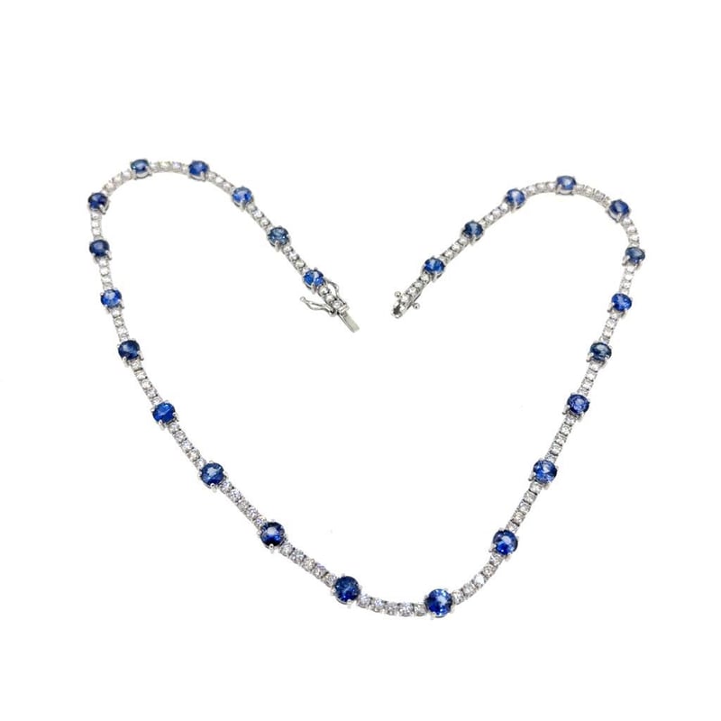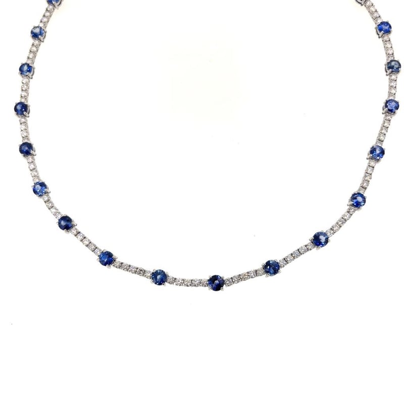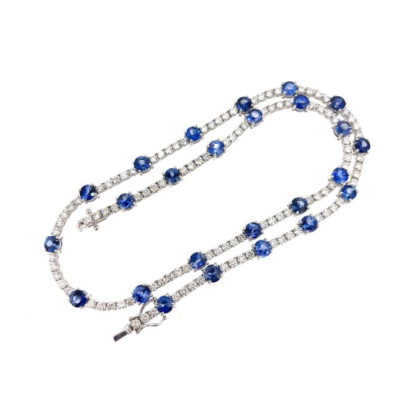 18CT WHITE GOLD SAPPHIRE AND DIAMOND TENNIS NECKLACE