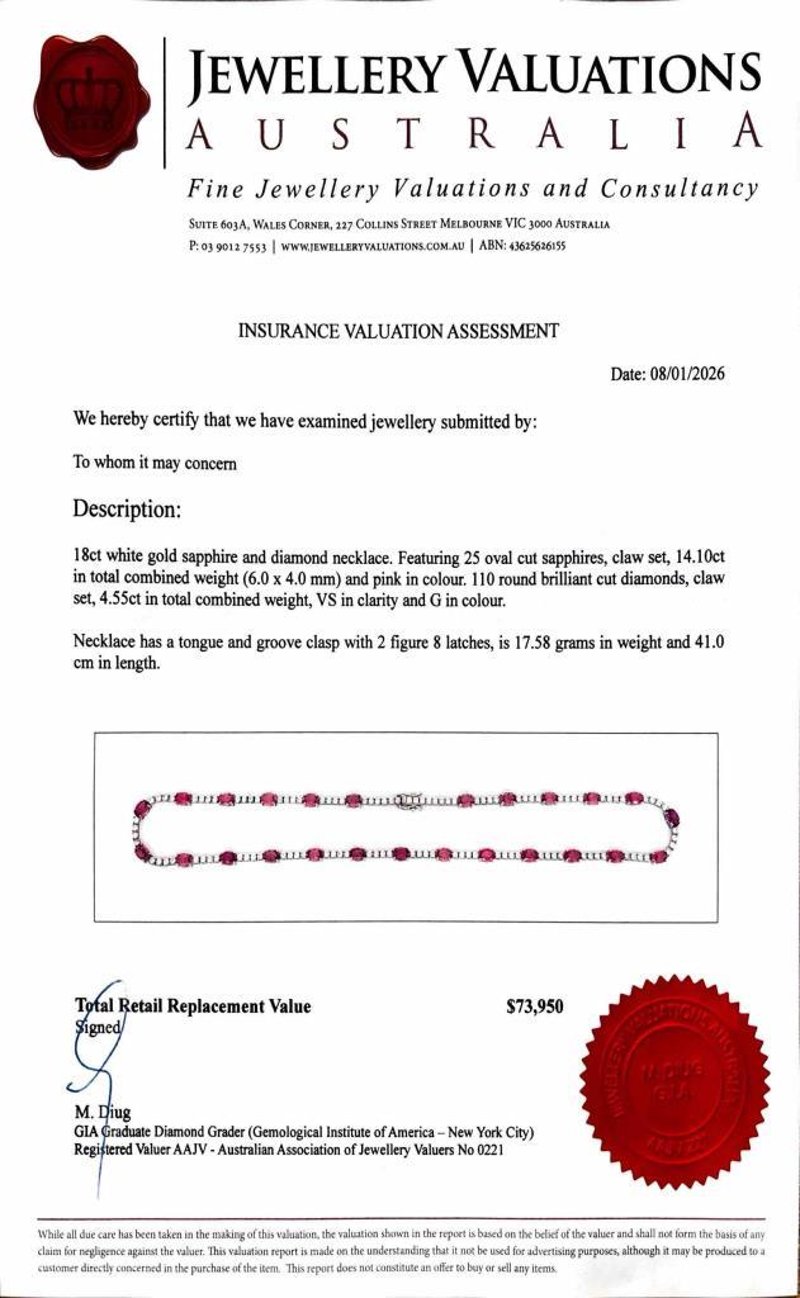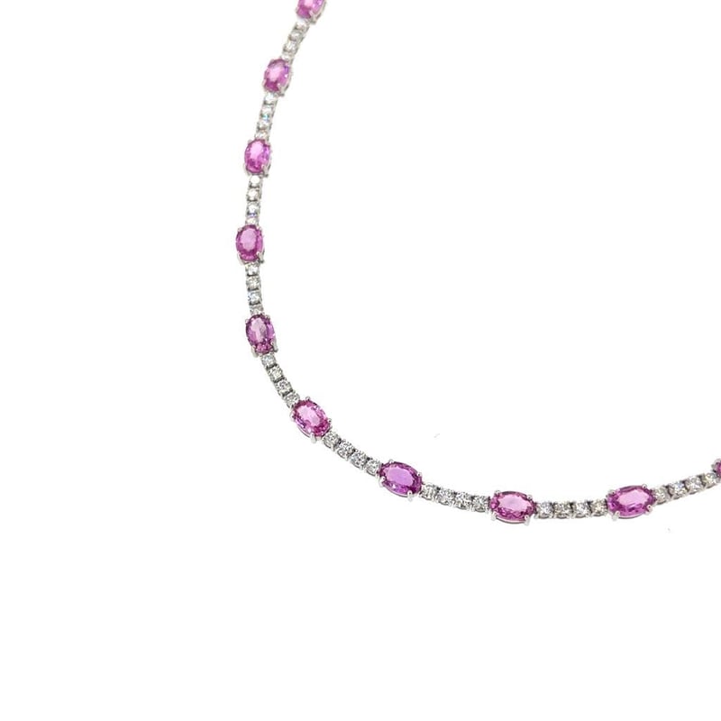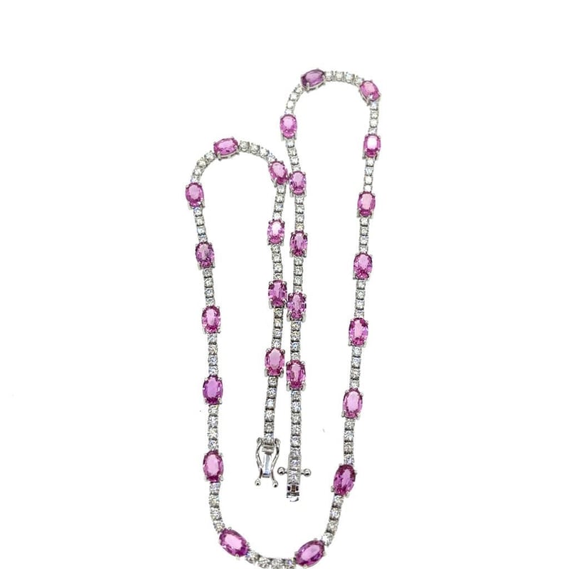 Featuring 25 Oval Cut Sapphires, Claw Set, 14.10Ct In Total Combined Weight (6.0 X 4.0 Mm) And Pink In Colour. 110 Round Brilliant Cut Diamonds, Claw Set, 4.55Ct In Total Combined Weight, Vs In Clarity And G In Colour.