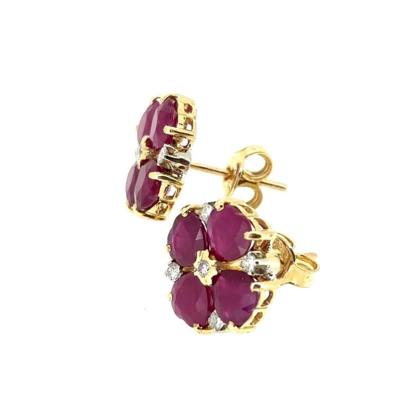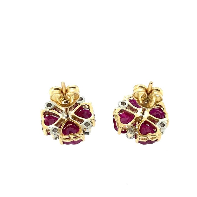 18CT YELLOW AND WHITE GOLD RUBY AND DIAMOND EARRINGS