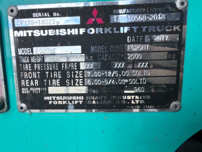 2017 Mitsubishi Grendia FG20N 2.0T Forklift